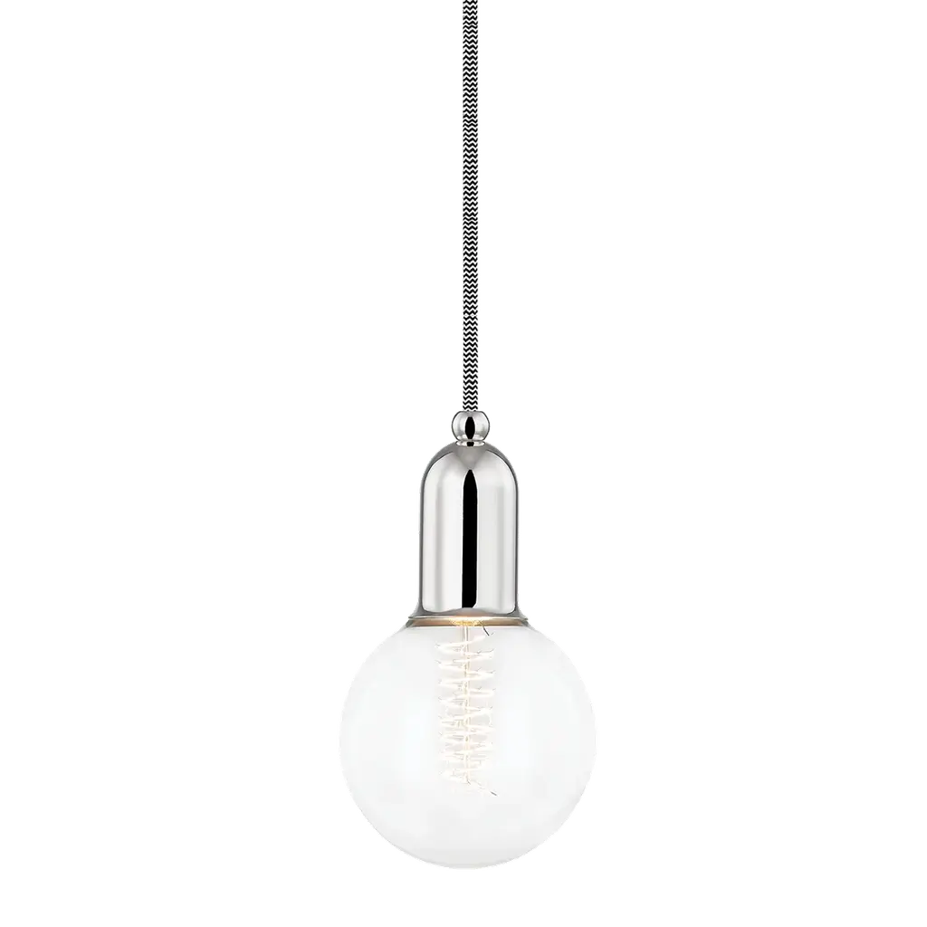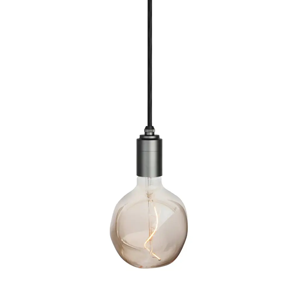 A cool graphite tone marks British firm Tala’s single-light pendant. It pairs beautifully with the brand’s Porcelain range of mouth-blown bulbs in matte glass (as shown In pictures.) The anodized aluminum pendant is fitted with a kink-free cord that’s easily adjusted by hand and comes with a matching ceiling plate.