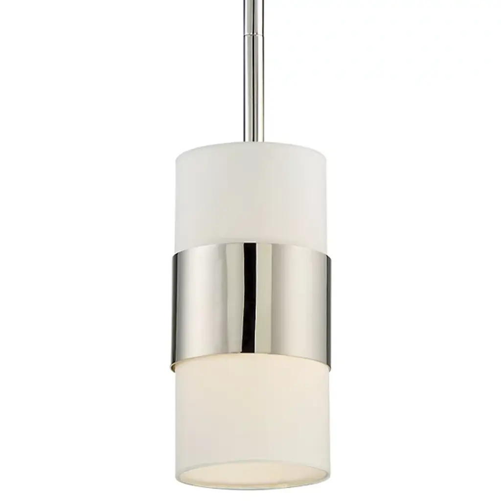 Designed by Libby Langdon, the Crystorama Grayson Mini Pendant has a Mid-Century Modern air while still being relevant in modern spaces. The linen shade is enhanced with a ribbon of shiny steel, the single bulb's illumination is softly diffused through the fabric to create a cozy atmosphere. Chic and minimal, use a few in a cluster over a kitchen island as an alternative to one large fixture.