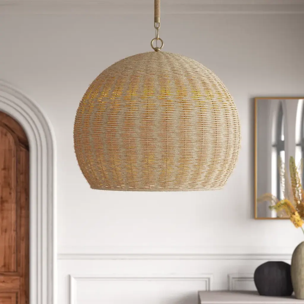 If cozy, paired-back, and relaxed style defines your home interior choices, the textural pendant light is what you have been looking for. The natural warmth of organic jute has a light and airy feeling that adds architectural interest to any space. The downward-facing rod is accented with wrapped jute with a gold finish, creating a beautiful tone-on-tone look. This versatile collection seamlessly blends in modern, coastal, and even traditional styles.