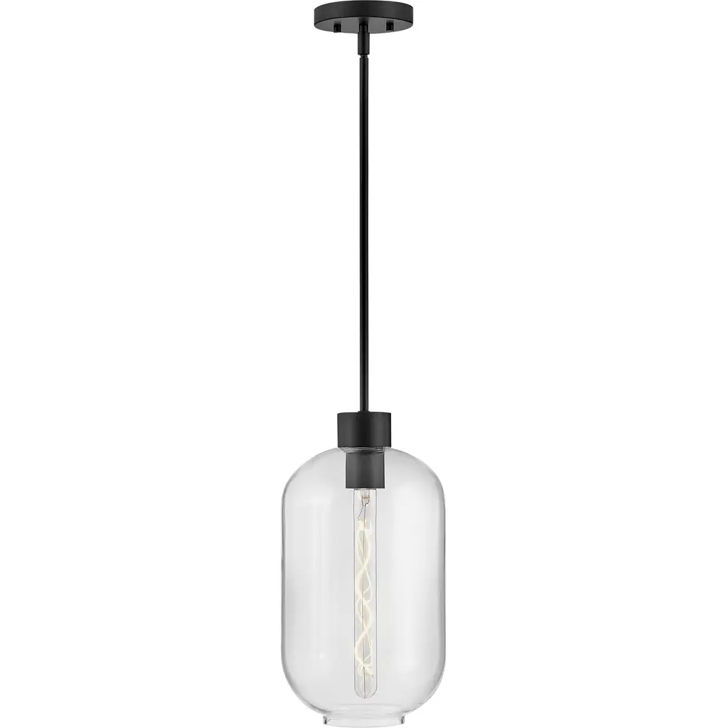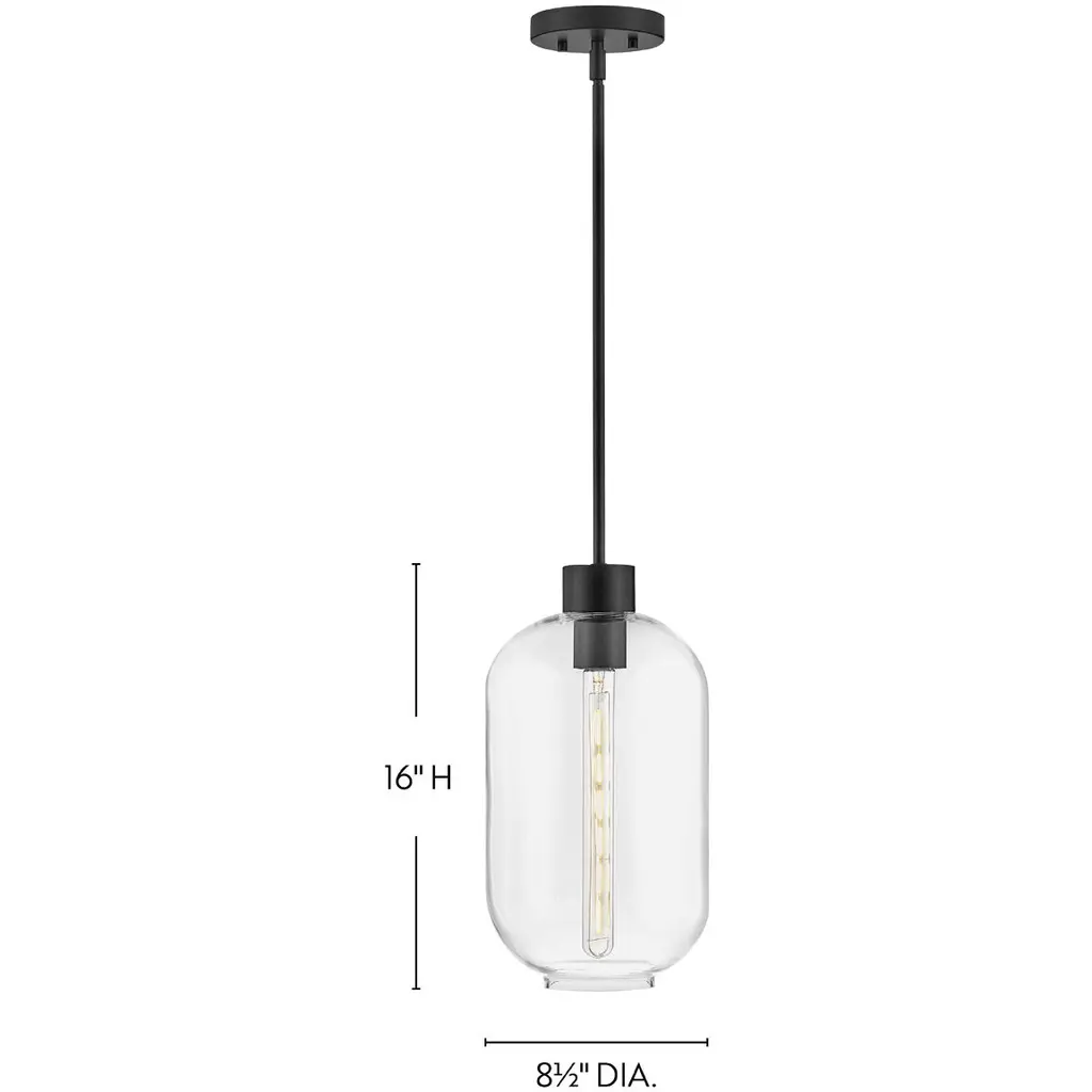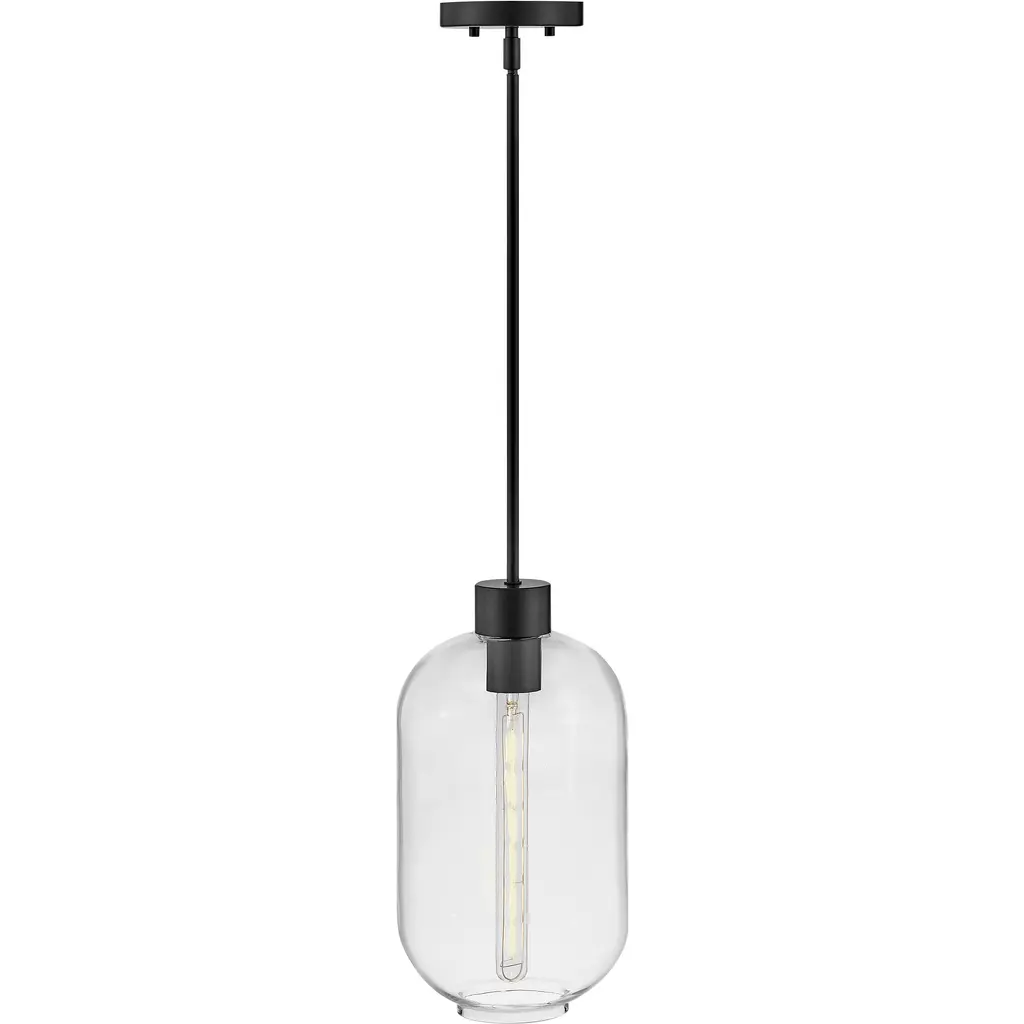 Greer circles around uniquely striking style, gleaming with hints of modern elegance. Featuring an elongated clear glass shade, this stem hung pendant has a trendy, oversized profile. Whether you choose a Black or Lacquered Brass finish, Greer brings sophisticated style to kitchens, foyers, living areas, and beyond.