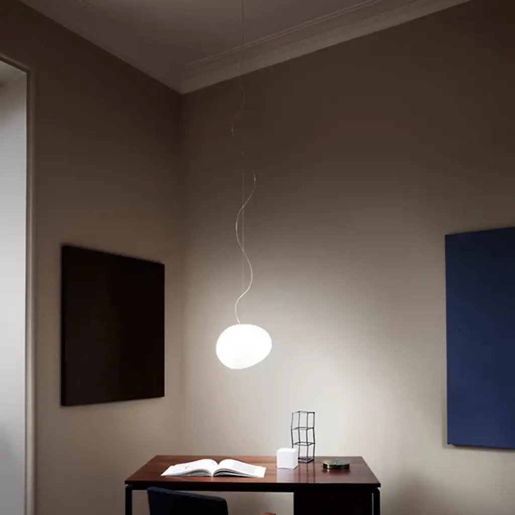The Gregg Pendant Light by Foscarini is a pendant light that dismisses any intent of geometric conformity; the defining characteristic of this pendant light is the glass that has been free-blown. The effect is one of organic-inspired grace. Since this does employ a free-blown technique, each diffuser is truly a one-of-a-kind piece of art. The mounting base is comprised of lacquered metal and comes with a field-adjustable suspension cable.