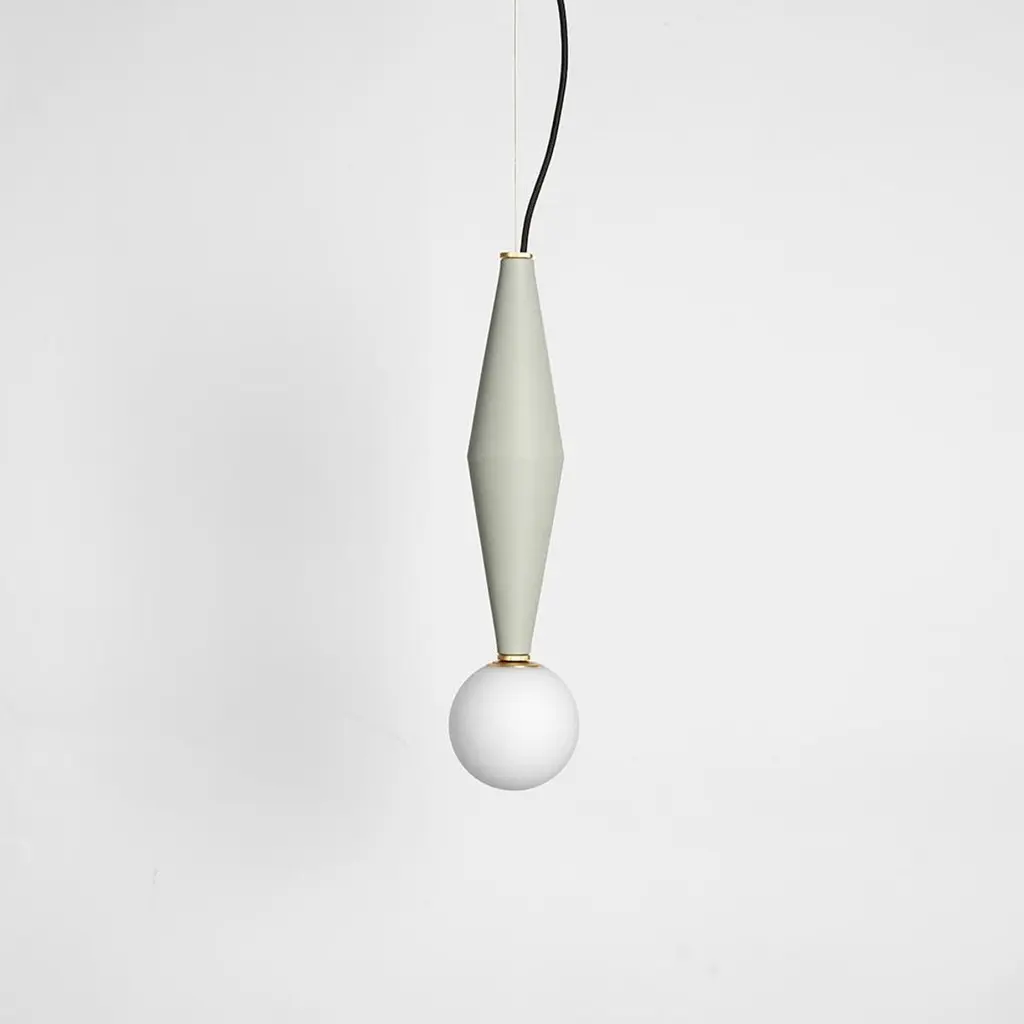 Grey Gamma B lamp by Mason EditionsDimensions: 12 × 12 × 37 cmMaterials: aluminium and blown opal white glassColours: pink, burgundy, light grey, sage green, petrol green, black.All our lamps can be wired according to each country.Gamma is the third letter of the Greek alphabet and also the third brightest star in the constellation.It’s in fact an alphabet of three aluminium elements, that creates a range of six modular suspensions. The frosted glass sphere contains the luminous soul which, combined in different ways with the metal elements, gives life to new solutions that look like constellations. Led hanging lamp exceptionally light and modern. Part of a collection of pendants with modular design, featuring three basic elements: two aluminium cones connected at the base and a blown glass sphere. Create mesmerizing suspensions by combining pendants of the same series, with matching colours. Available in: pink, burgundy, sage green, petrol green, light grey and black.Mason Editions is an Italian company specialized in the production of design furniture, lighting solutions and accent pieces. Born from the lifelong passion for lighting and entrepreneurial spirit of Fabio and his partner Silvia, Mason Editions places itself halfway between fine art and exquisite craftsmanship. A collection of lighting, design objects and furnishing accessories, signed by artists Serena Confalonieri, Martina Bartoli and Matteo Fiorini, head of the creative direction. Mason Editions comes from the experience of an Italian lighting company placed in the Veneto region. This new brand of furniture elements was born from the meeting between the entrepreneur Fabio Mason and three international designers who designed the first collection for a sophisticated public. Therefore the collection wants to be eclectic and timeless. The material contrast and fresh design, with essential shapes, mark the mason editions collection. In conclusion, the elegant Italian sign highlights proposals suitable for all environments. Mason editions is a set of experiences, artisans, and productive know-how that creates a capable system.