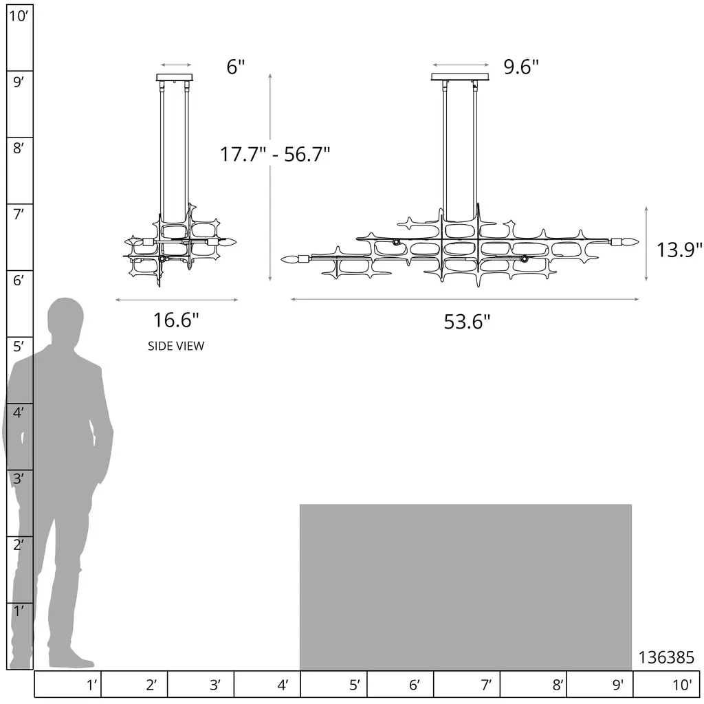 Grid 6 Light 53.6 Inch Bronze Pendant Ceiling Light