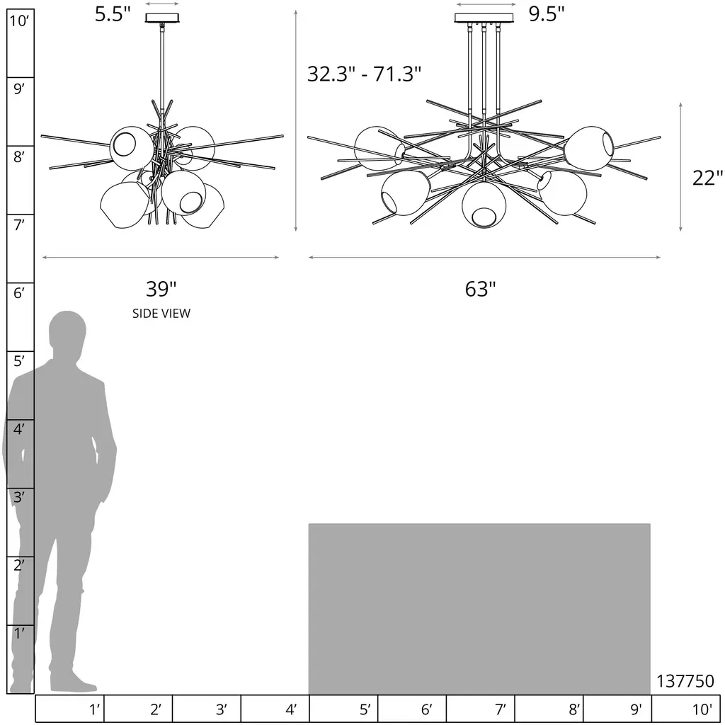 Griffin 6 Light 63 Inch Soft Gold Pendant Ceiling Light