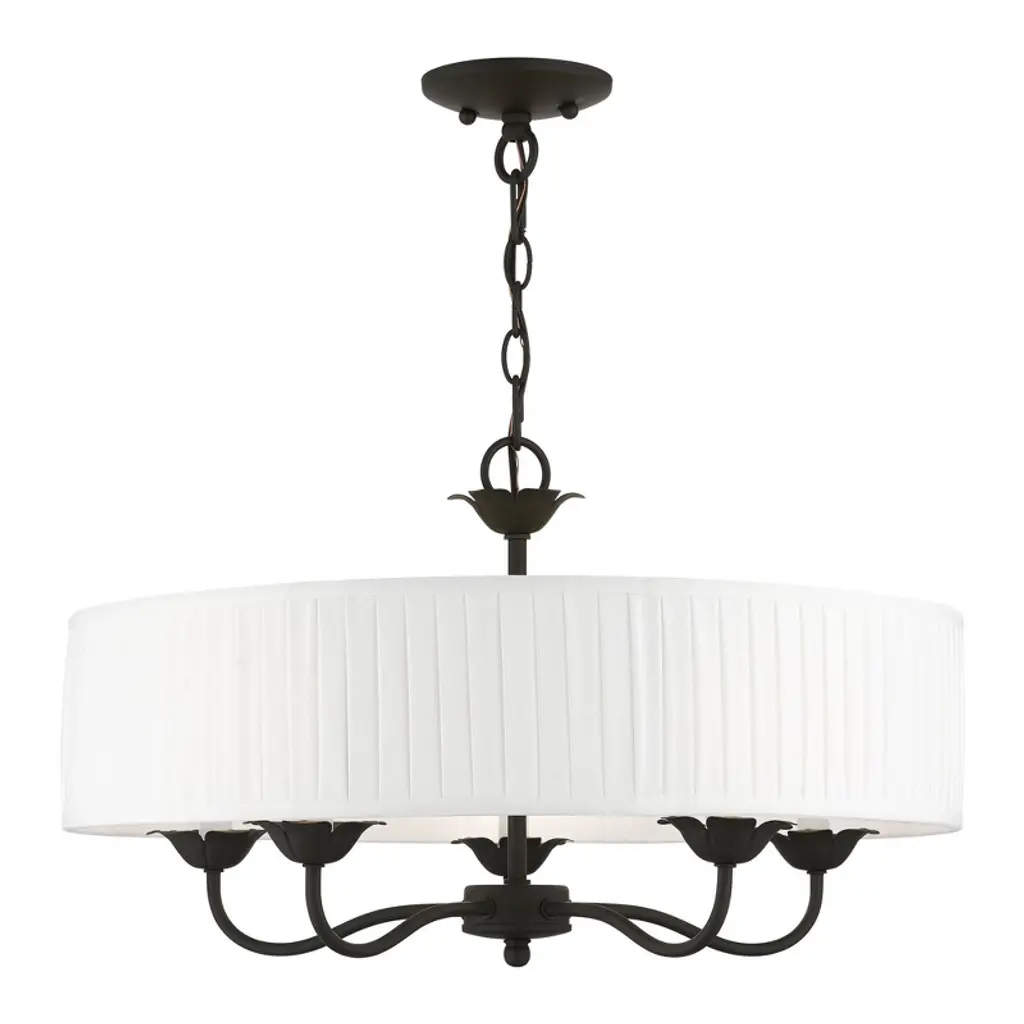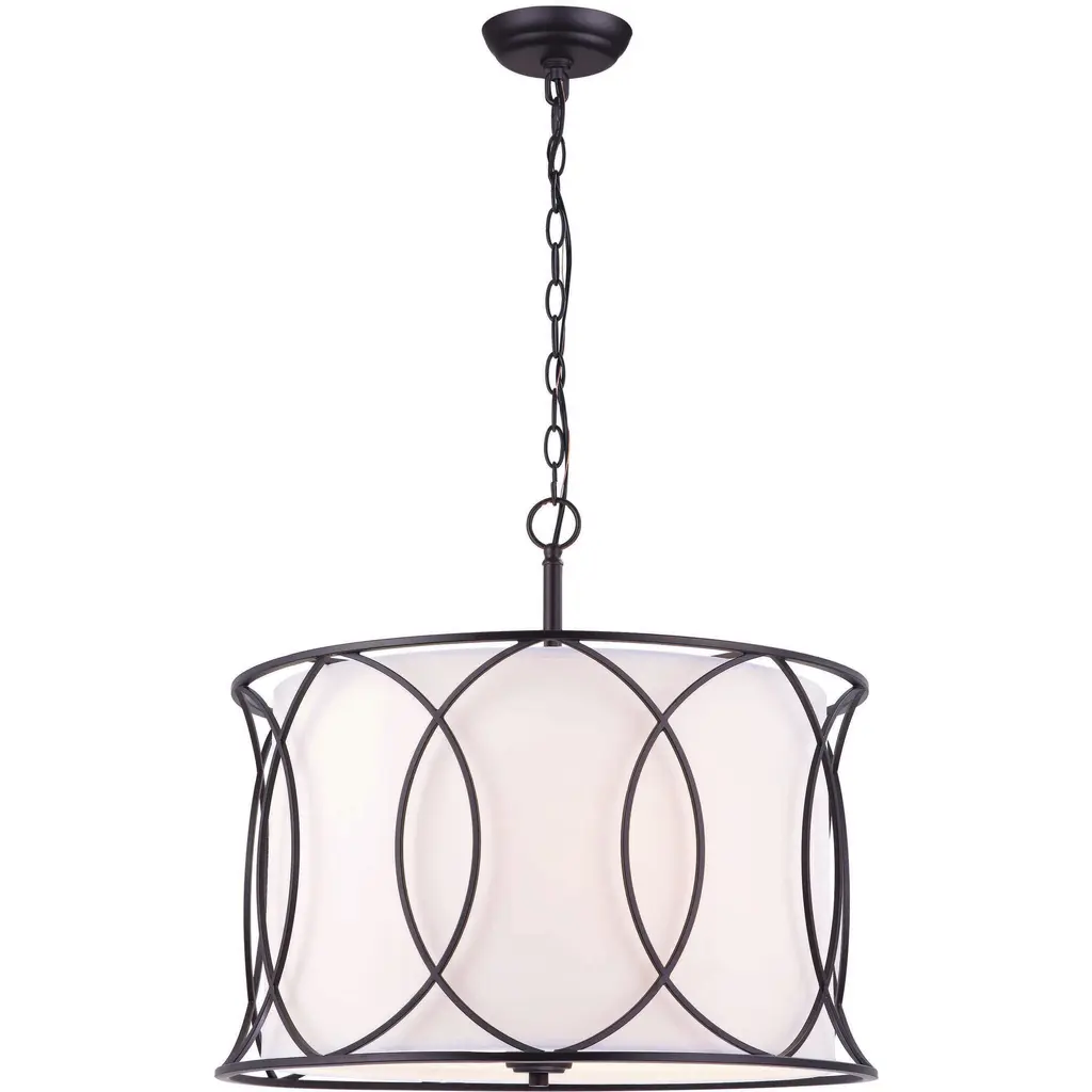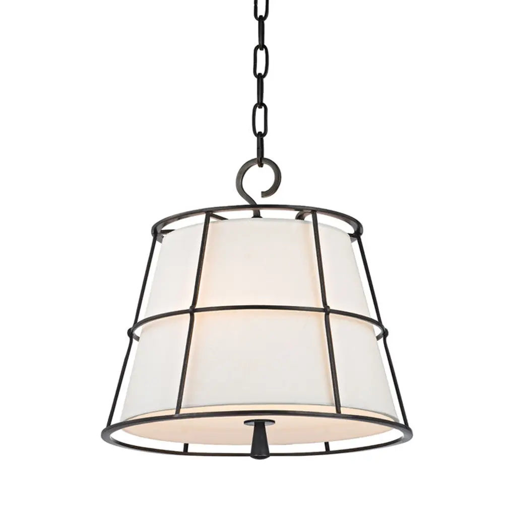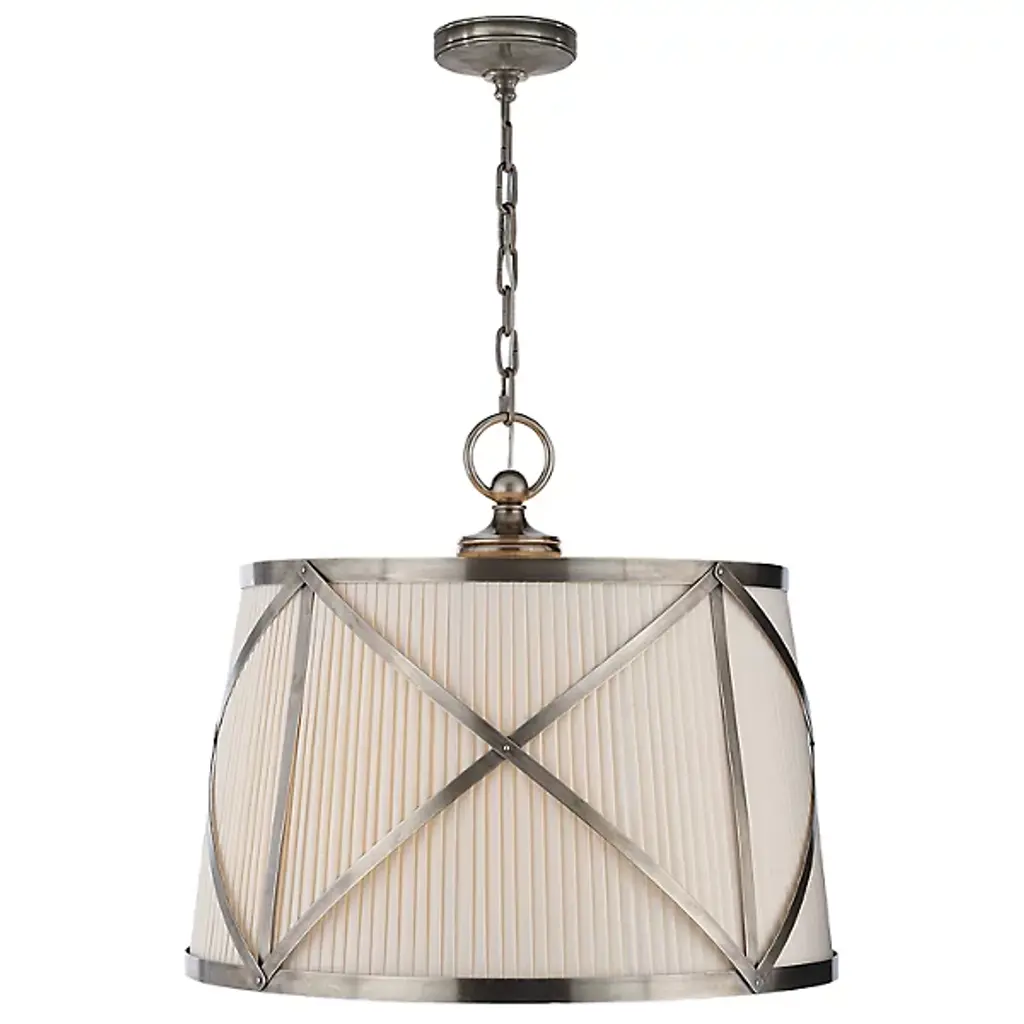 The Visual Comfort Signature, formerly known as Visual Comfort, Grosvenor Large Pendant is a simple piece with an added graphic element. The pleated linen shade is contrasted against metal banding in a criss-cross pattern, putting a modern spin on this somewhat traditional piece. Minimal yet compelling with artistic details, this update to a standard shade has a refreshing and subtly modern presence.