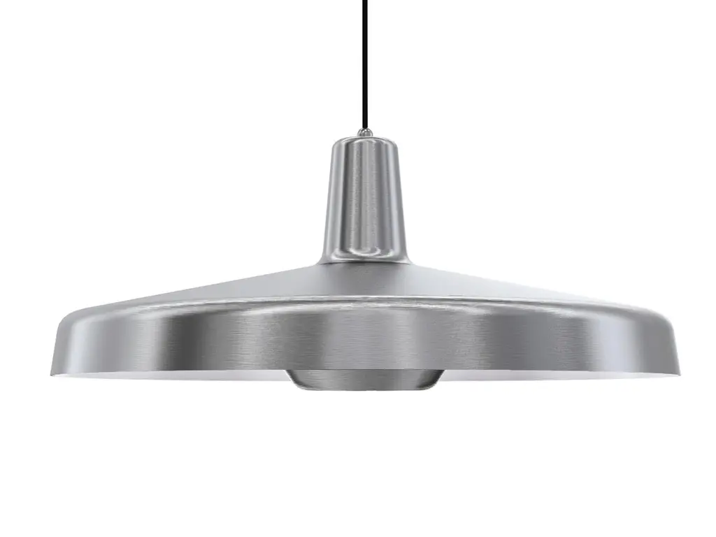 The Arigato family of fixtures has appreciation built into its very DNA given its name means thank you in Japanese. According to its design team, Tihana Taraba, Ivana Pavic and Filip Despot of Grupa Products, this was intentional, as they meant for the simple design to express a humble gesture of gratitude through its Minimalist profile. But the trio took anything but an unassertive tack when designing them, as the patented joinery on each fixture has gone through such a rigorous process it simply won't wear out, as is often the case with the joints on mere mortal task-lights. The Arigato pendant large is available in black, white and raw aluminum, and in fluorescent or LED light. Specifications:Light Source: LED: 1 x 9.5W E26 A19Shade: AluminumCord: Black or whiteCord length: 6 feetDimensions: Height 72 in. x diameter 17.75 in.Shade width 17.75” Adjustable drop length.