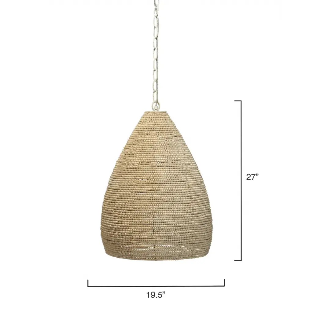 Adorned with hundreds of hand-carved mango wood beads, each with its own character, this oversized pendant will embellish any room with eye-catching texture. Whether it recalls summer at the seaside or bohemian chich, the substantial scale makes it an ornamet for any room.
