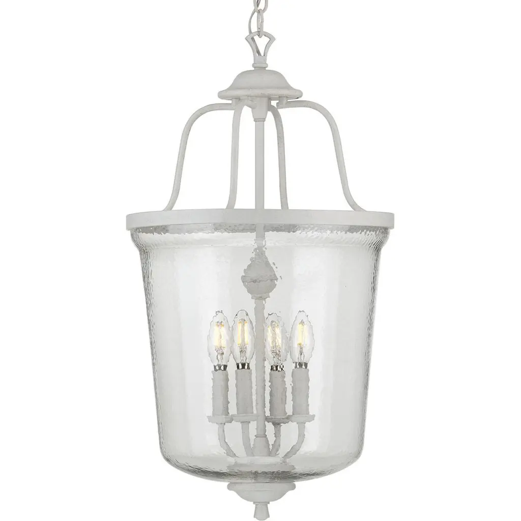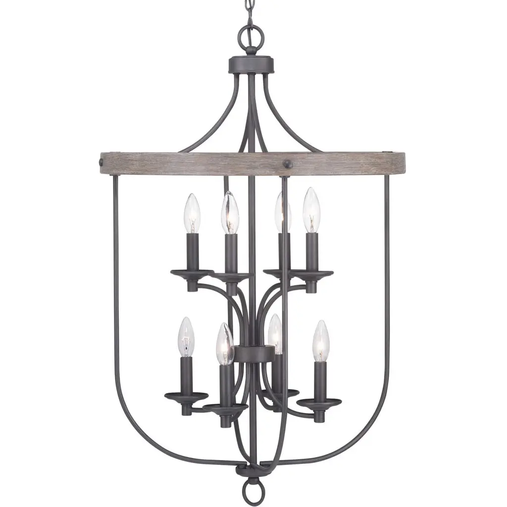 The eight-light foyer in the Gulliver Collection features arching and delicate details that curve to create an airy design. Dual toned frame color combinations in a Galvanized finish with antique white accents The hand painted wood grained texture finished to emulate weathered driftwood complements Rustic and Modern Farmhouse home decor, as well as Urban Industrial and Coastal interior settings.