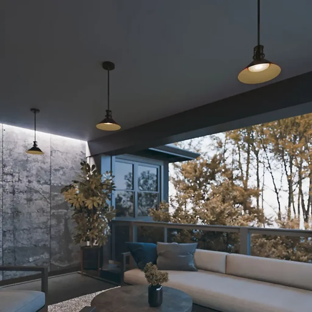 Discover the perfect outdoor lighting solution with the Gus Outdoor Pendant by AFX Lighting. This pendant light features a wide shade constructed from aluminum and steel. Inside the flared shade, an integrated LED module casts bright and focused illumination to provide a source of visibility in the darkness. Create the perfect outdoor atmosphere, as this pendant features a dimmer with a 3-in-1 adjustable color temperature system. Enjoy your patio or porch in style and comfort.