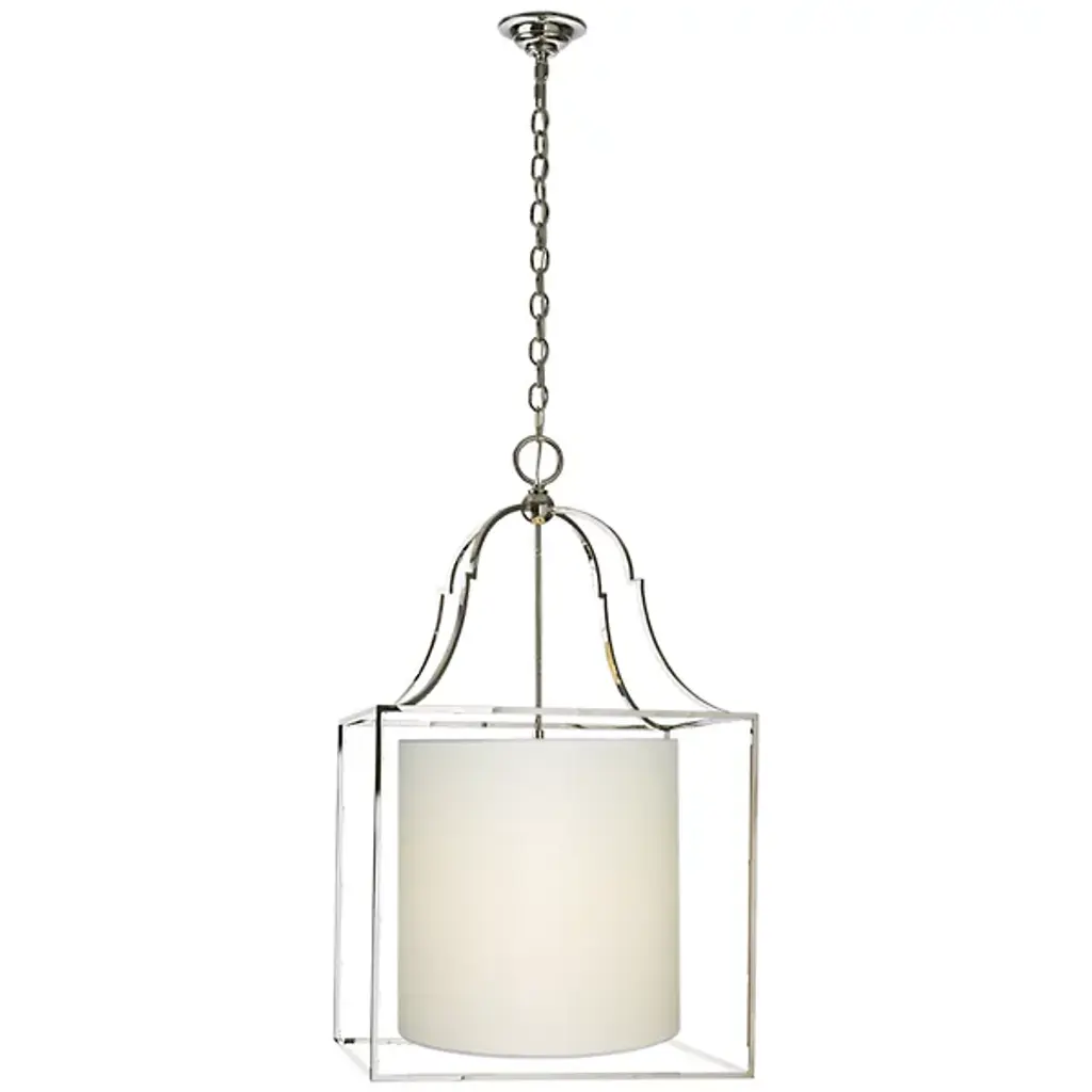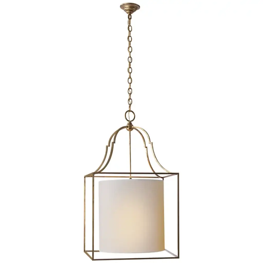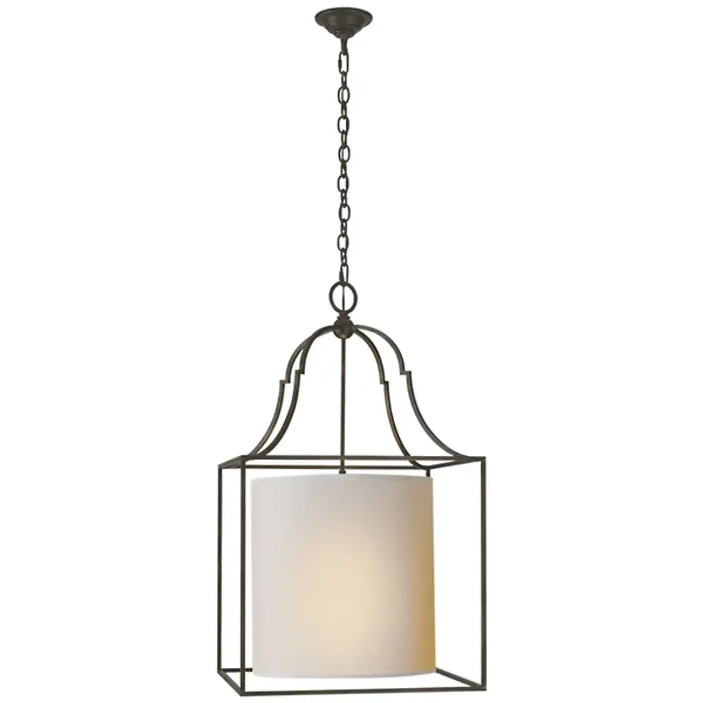 The Visual Comfort Signature, formerly known as Visual Comfort, Gustavian Lantern Pendant is a blend of modern and traditional styles. A simple round paper shade is encased in an open metal frame, which is accented with appealing baroque curves near the top. Straightforward with enticing details, this ceiling light will illuminate your space with a contemporary spin on classic style.