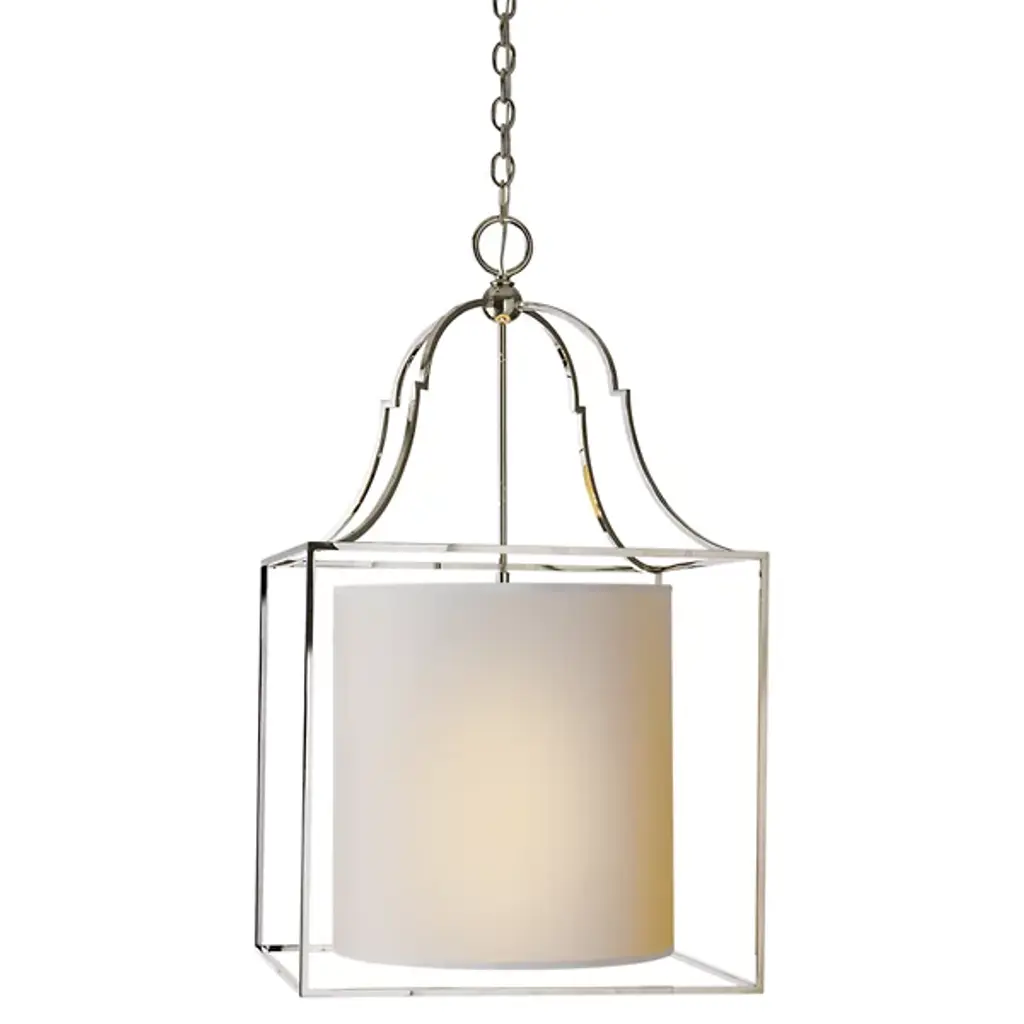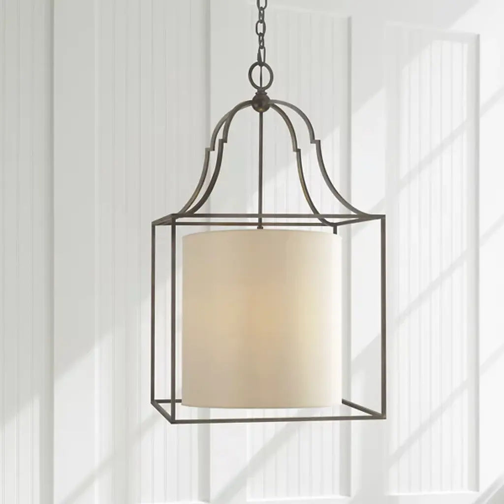 The Visual Comfort Signature, formerly known as Visual Comfort, Gustavian Lantern Pendant is a blend of modern and traditional styles. A simple round paper shade is encased in an open metal frame, which is accented with appealing baroque curves near the top. Straightforward with enticing details, this ceiling light will illuminate your space with a contemporary spin on classic style.