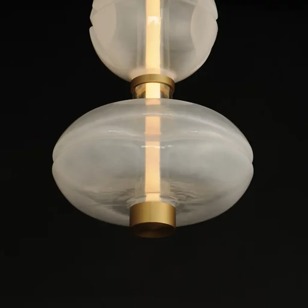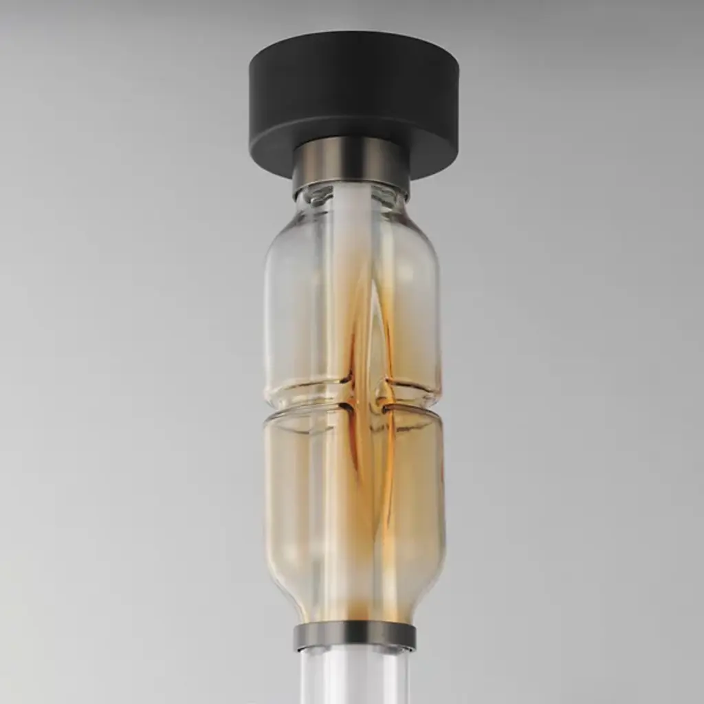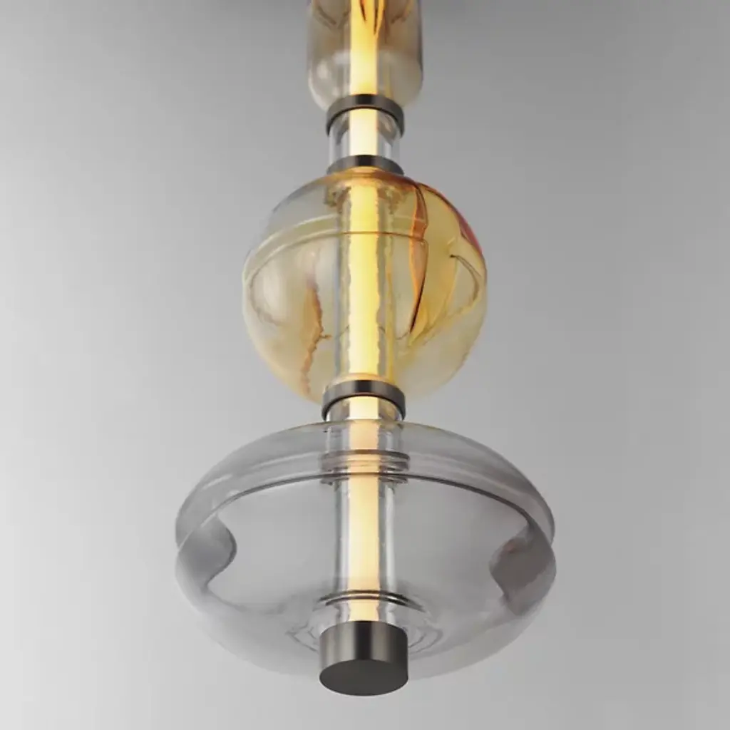 Elevate your home with the contemporary elegance of the Gusto LED Semi-Flushmount from Studio M. Crafted by the visionary designer Cesar Giraldo, this avant-garde piece features artisanal hand-blown glass elements. Each glass is adorned with hand-crafted dimples that refract dedicated LED lighting, creating a mesmerizing dance of light along the lamp's undulating silhouette. Encased within clear glass, the ethereal compositions seemingly float, casting a gentle and diffused glow that enhances any space.