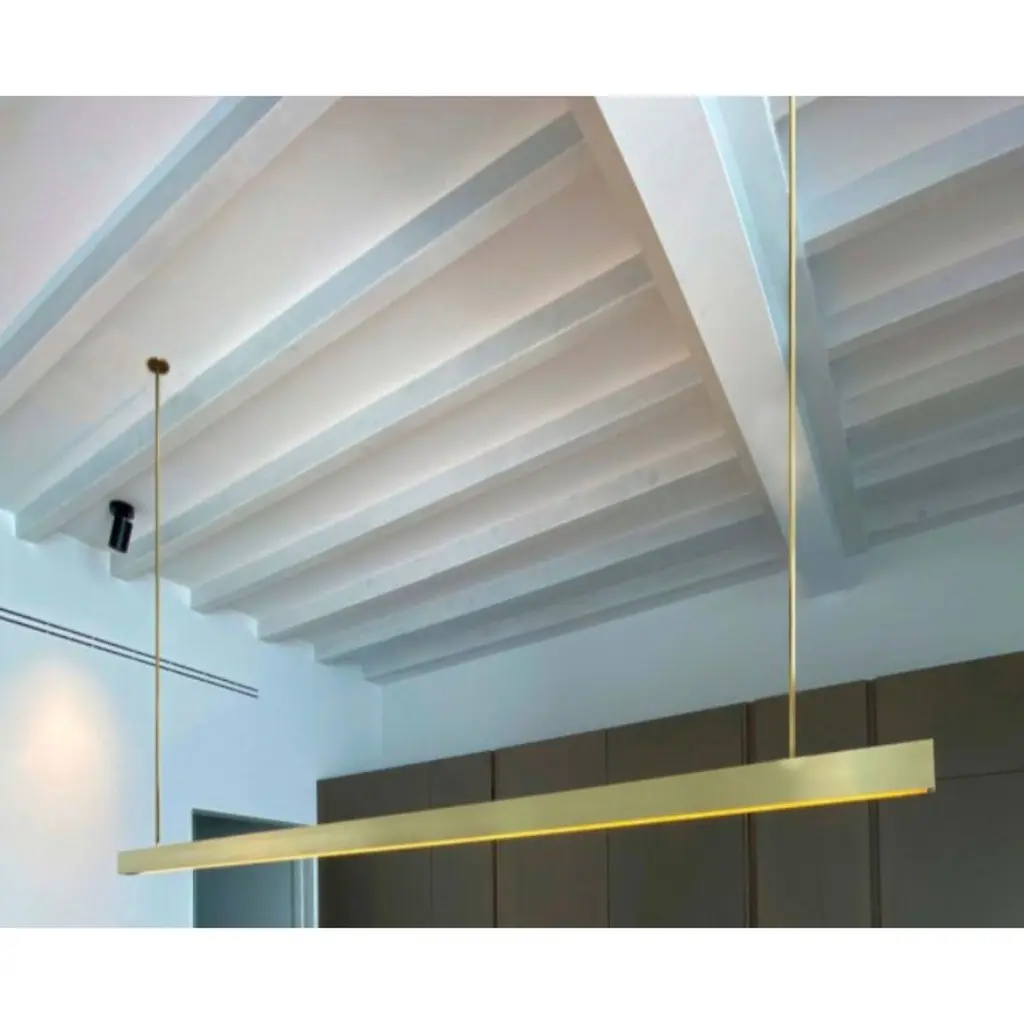H Pendant Lamp 250 by OHLABDimensions: D 4.5 x W 250 x H 100 cm (custom length) Materials: Brass structure, tubes or tensioners. Available in different finishes and dimensions (200 cm / 250 cm / 300 cm x (custom length) x 4,5 cm). Please contact us.All our lamps can be wired according to each country. If sold to the USA it will be wired for the USA for instance.“You are where you live” So, we decided to live in Mallorca. We are Mauricio Obarrio and Juan Peralta and CONTAIN is our lighting and furniture design studio.This collection is the result of the collaboration between our studio, local artisans and the industrial sector; where creativity and simplicity creates a unique synergy and generates a narrative between the materials used and the pieces created. Our mission is to deliver artisan crafted, highly engineered, sophisticated yet simple lighting design solutions. Our studio's inspiration is fueled by an obsession with natural materials such as Brass, Glass, and Hardwoods along with a love for artisan craftsmanship.