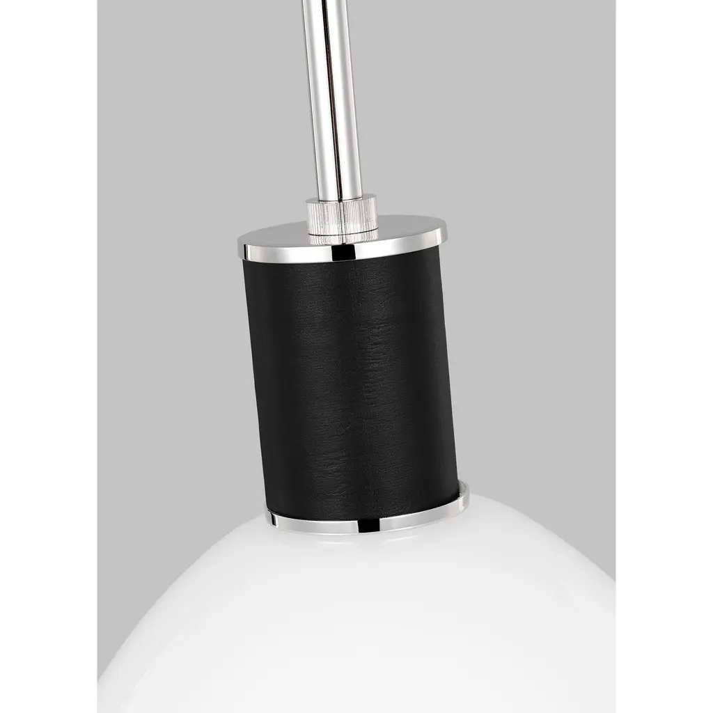 Classic lantern and pendant series with leather details. The combination of leather and steel gives this series equestrian flair. At home in a variety of decors, this small pendant from Lauren Ralph Lauren is simple yet impactful with its leather elements in a Polished Nickel with frosted glass shade. With its compact size, we especially love this paired in multiples above a dining room table or kitchen island. A truly transitional series that can be at home in any décor.