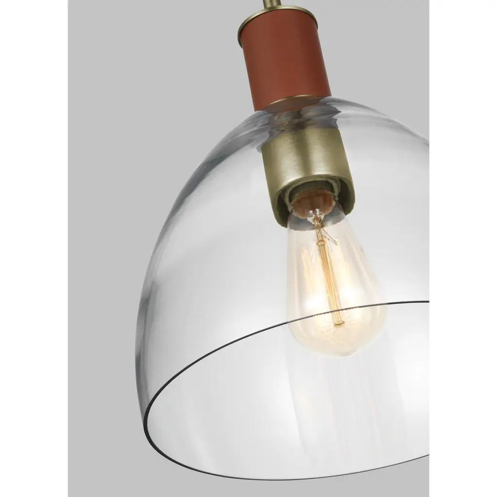 Classic lantern and pendant series with leather details. The combination of leather and steel gives this series equestrian flair. At home in a variety of decors, this small pendant from Lauren Ralph Lauren is simple yet impactful with its leather elements in a Time Worn Brass finish with clear glass shade. With its compact size, we especially love this paired in multiples above a dining room table or kitchen island. A truly transitional series that can be at home in any décor.