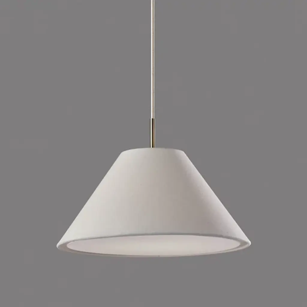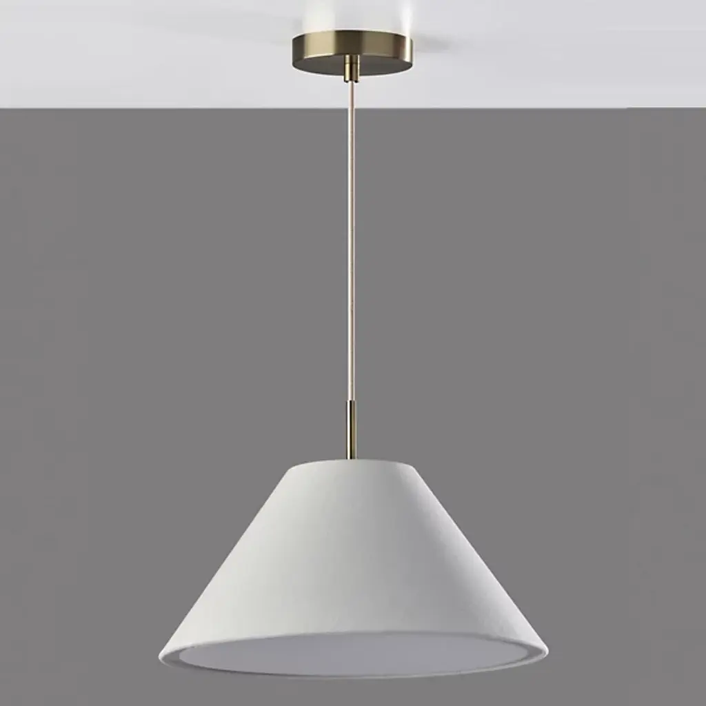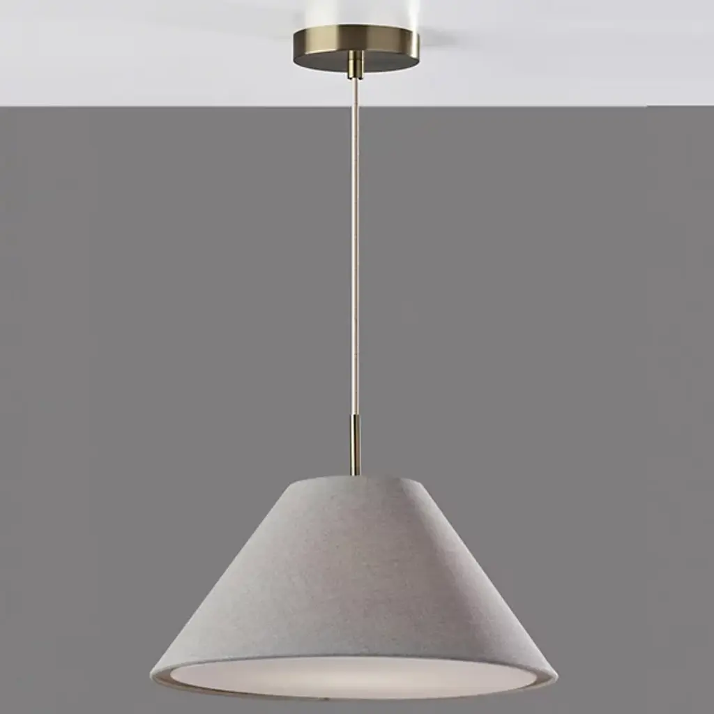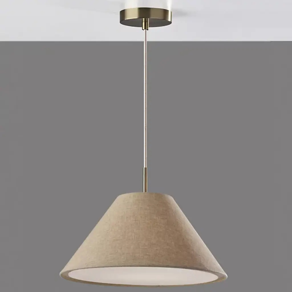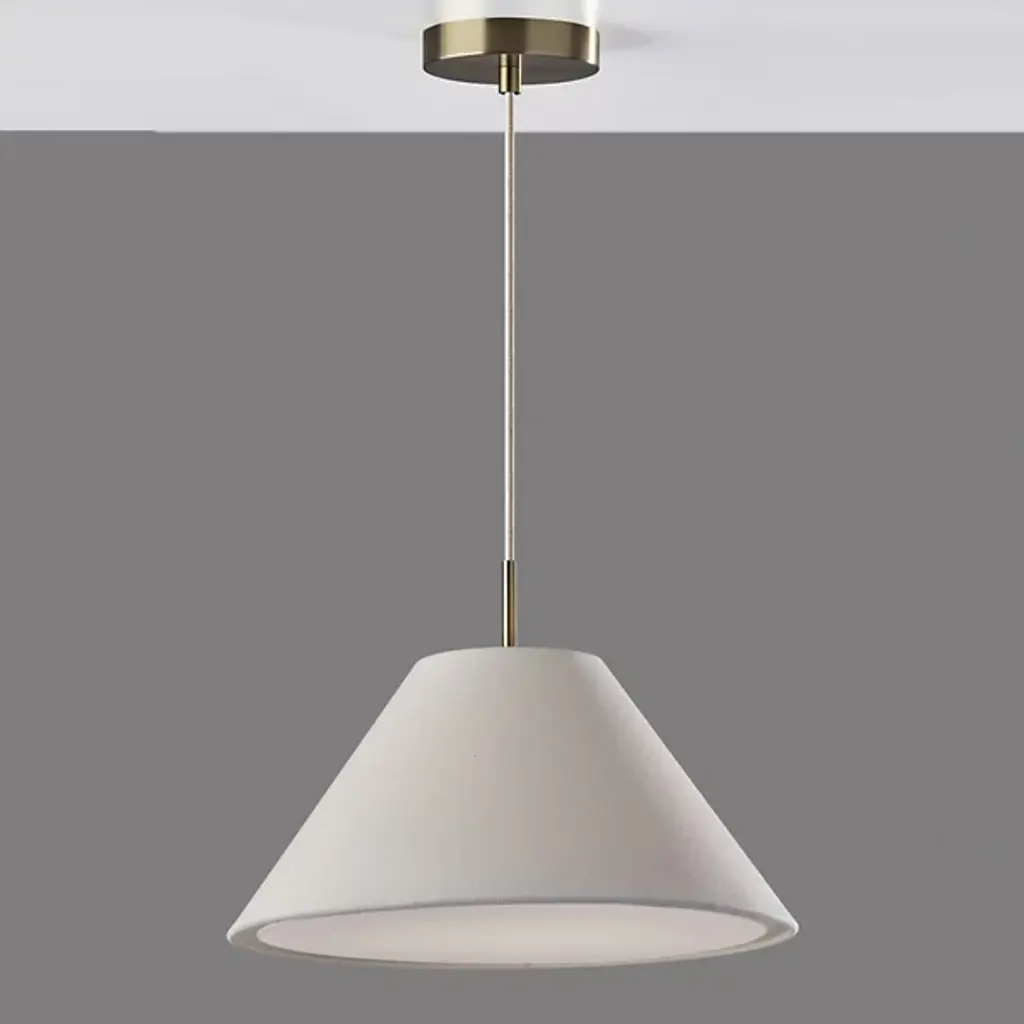 Illuminate your space with the pleasant warmth and clean, chic style of the Hadley Pendant from Adesso. This pendant is a beauty on its own or in a series over a communal space. The tapered white textured shade draws a clean geometric silhouette. This fabric diffuser softly distills the light from a brilliant bulb inside. Its fabric cord suspension allows you to adjust the height of the lamp to suit the needs of the room. The cord hangs from a low-profile metal canopy.