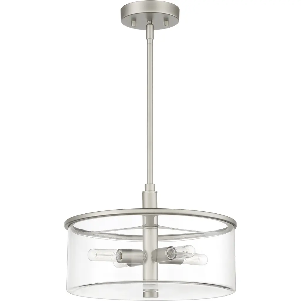 The elevated clear glass cylinder globes and slender arms enhance the simplistic beauty of the Hailie interior lighting collection by Craftmade. The Hailie collection includes a full array of chandeliers, semi and flushmounts, pendant and several sizes of vanity bath bars.