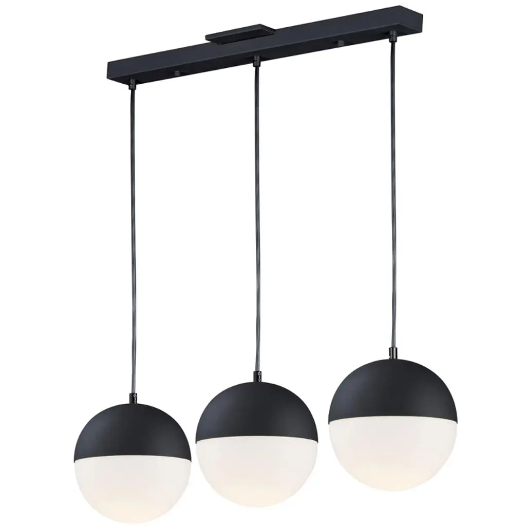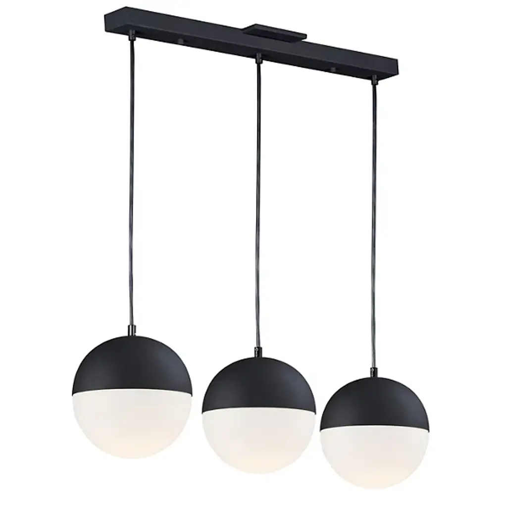 The Half Moon Linear Multi-Light Pendant by ET2 Lighting offers a modern and minimal lighting solution for kitchens, living rooms, and dining areas. Sharing an elongated canopy, a series of satin white glass shades are suspended from slender cords, each one half-covered with a smooth steel cap. Integrated LED light modules illuminate the globes to create serene, glowing orbs that evoke the look of half-moons in the sky while brightening a space with ample energy-efficient light.