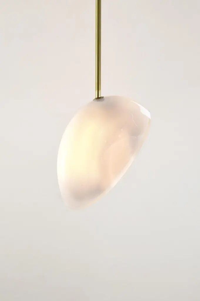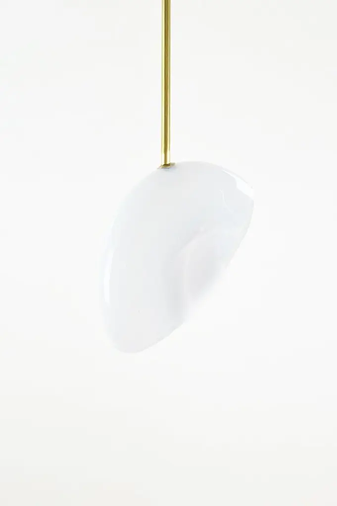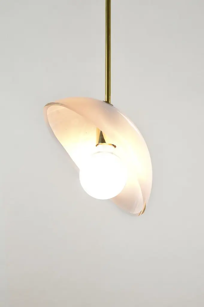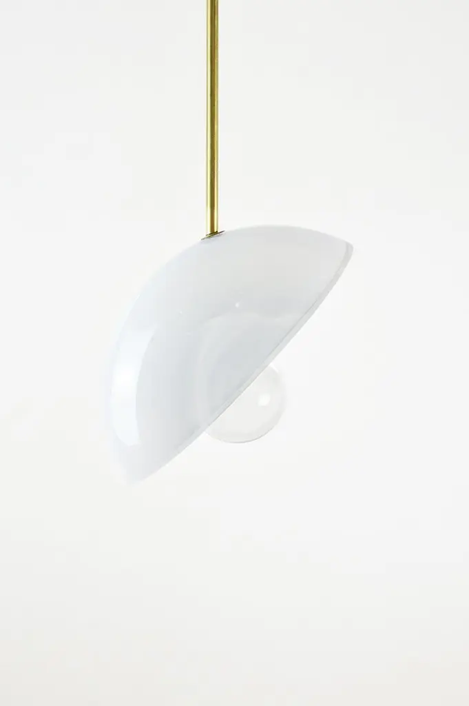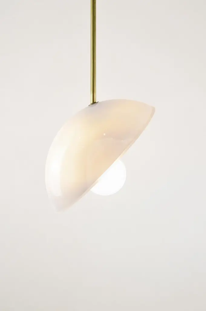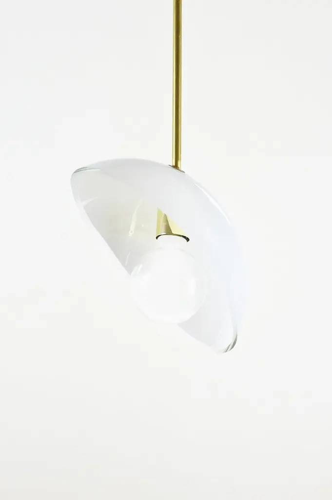 Half-moon pendant by Atelier GeorgeOne of a KindDimensions: L 27 x l 14 x H 27 cm Stem length : 100 cmMaterials: Handblown glass230/240 Volts 50-60 Hz 9 WattAll our lamps can be wired according to each country. If sold to the USA it will be wired for the USA for instance.The Atelier George is a French design and glassblowing studio. Each piece is hand-made using hot glass crafting techniques. To bring you a set ofunique objects, the crafting process and the color finish makes every piece slightly different from the next.