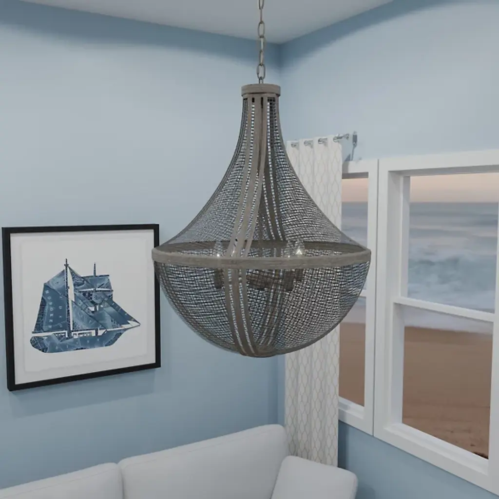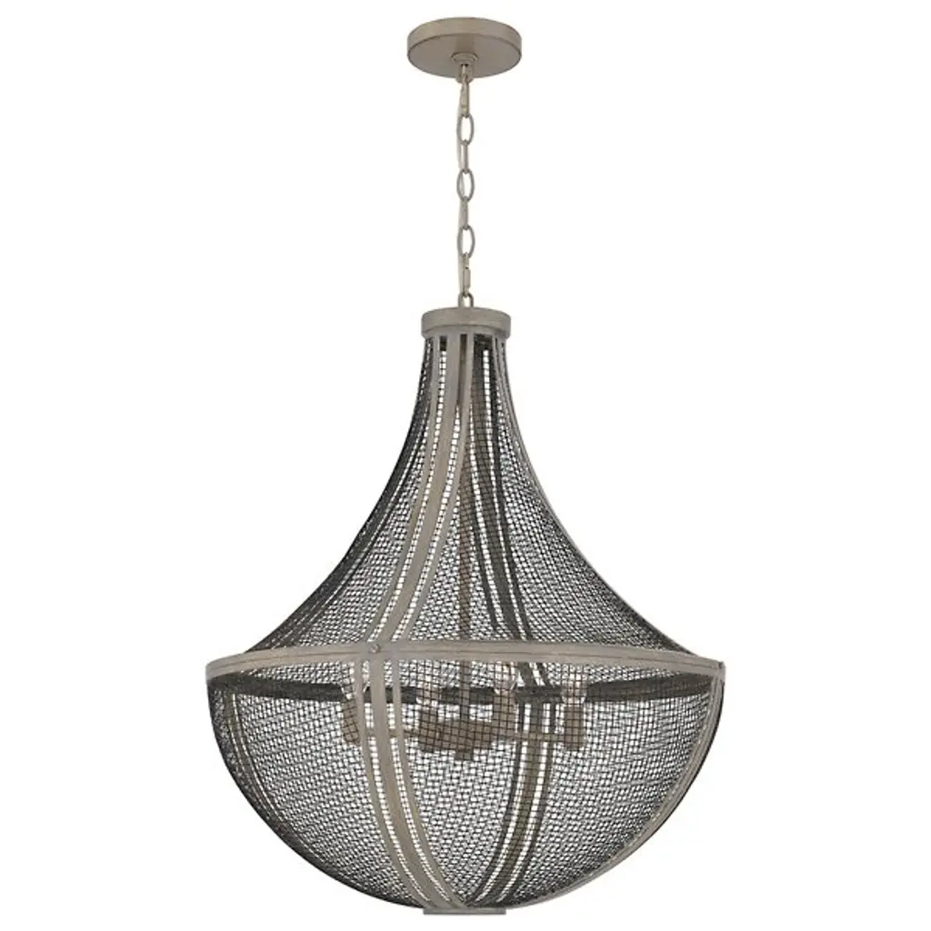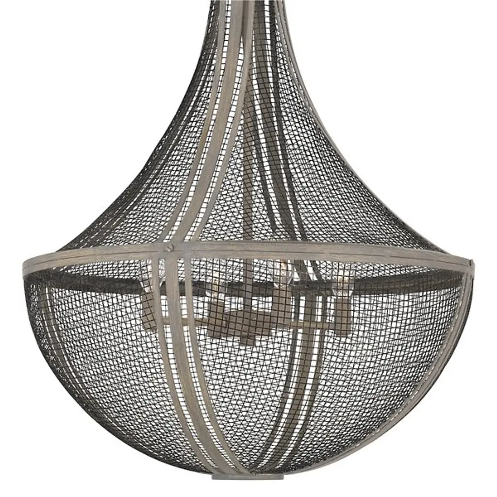 Enchanting its surroundings with an open global design, Quoizel's Hallie Pendant features a metal mesh shade and a captivating distressed grey wood finish. The fusion of the grey wood-themed accent over its steel frame evokes modern farmhouse charm, making a bold visual impact in foyers, hallways, living rooms, or home offices. Suspended from a circular canopy by a chain, its open design offers versatile functionality and style. Damp-listed for durability, this pendant intersects transitional aesthetics, infusing any interior setting with a refined yet rustic allure.