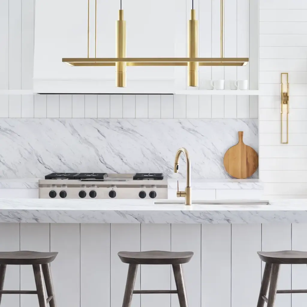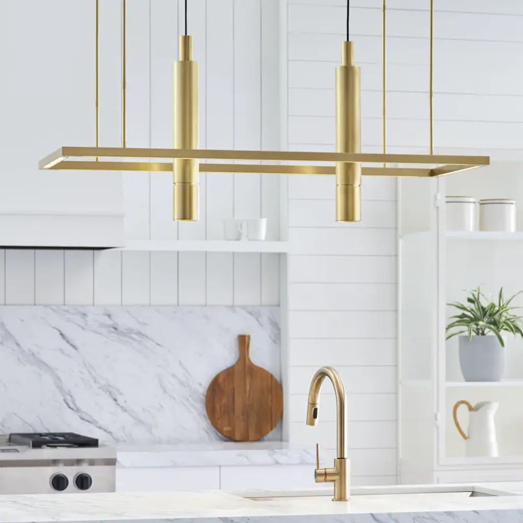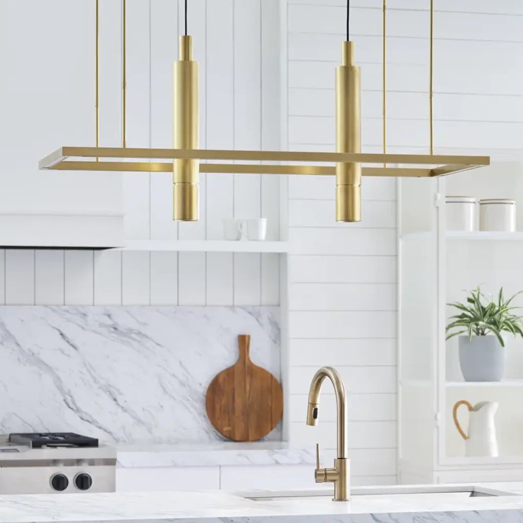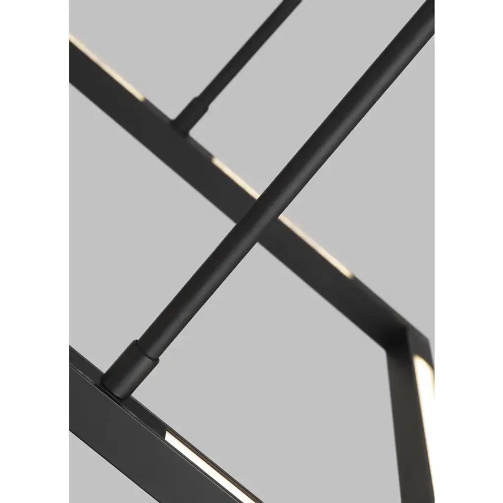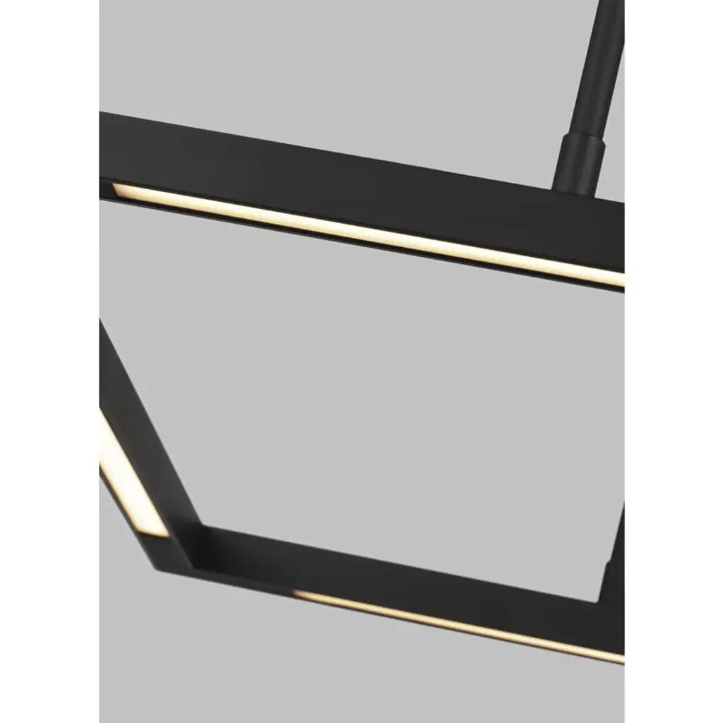 The rectangular frame and grand scale of the Stagger Halo 84 linear suspension by Mick De Giulio for tech lighting offer a symmetrical element to a multitude of spaces to create more visual texture and energy. The generous size and slender shape are inventive enough in scale and depth to delicately illuminate while blending with the overall architecture of the space. The modern finishes and dramatic presence of led light elevate your environment symmetrically and stylishly above elements like a dining table or kitchen island.