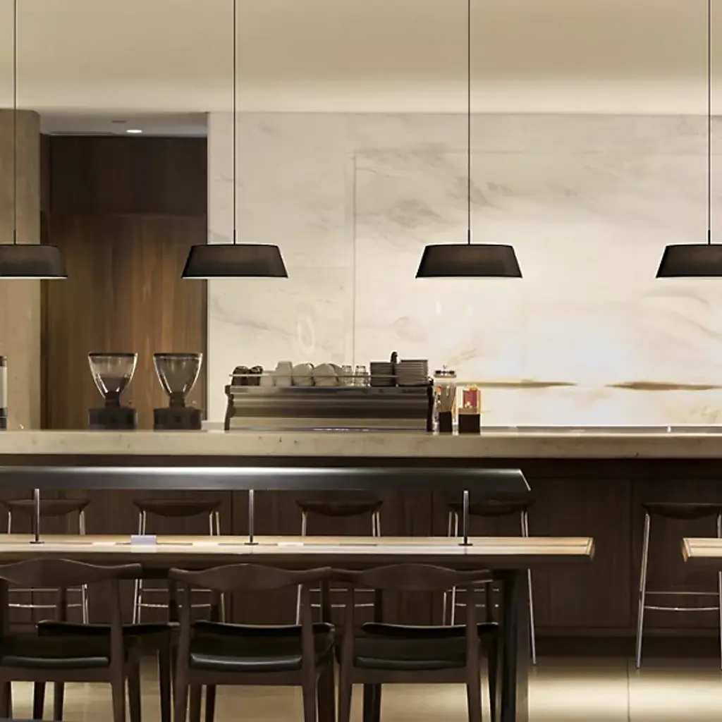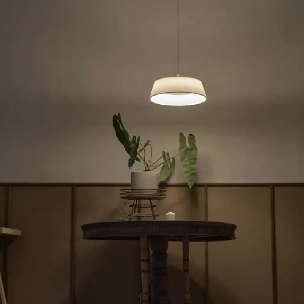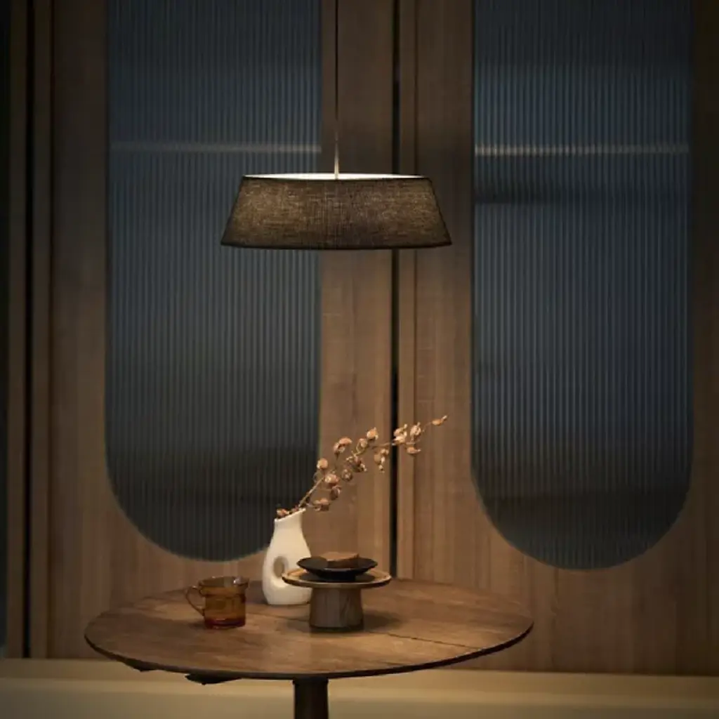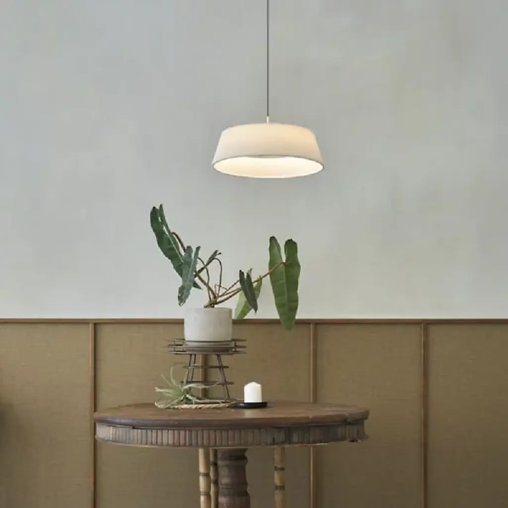 The Halo LED Pendant from Seed Design merges retro charm with innovative design. Created by Chao Cheng Chen, it presents a pleated fabric shade supported by a circular steel and aluminum frame, transforming the light within into a soft, ambient glow. The integrated LED brings out vibrant colors, creating a calming atmosphere reminiscent of natural daylight. Ideal for contemporary or mid-century modern spaces, this pendant and its textured shade provide character and balanced illumination to any environment.