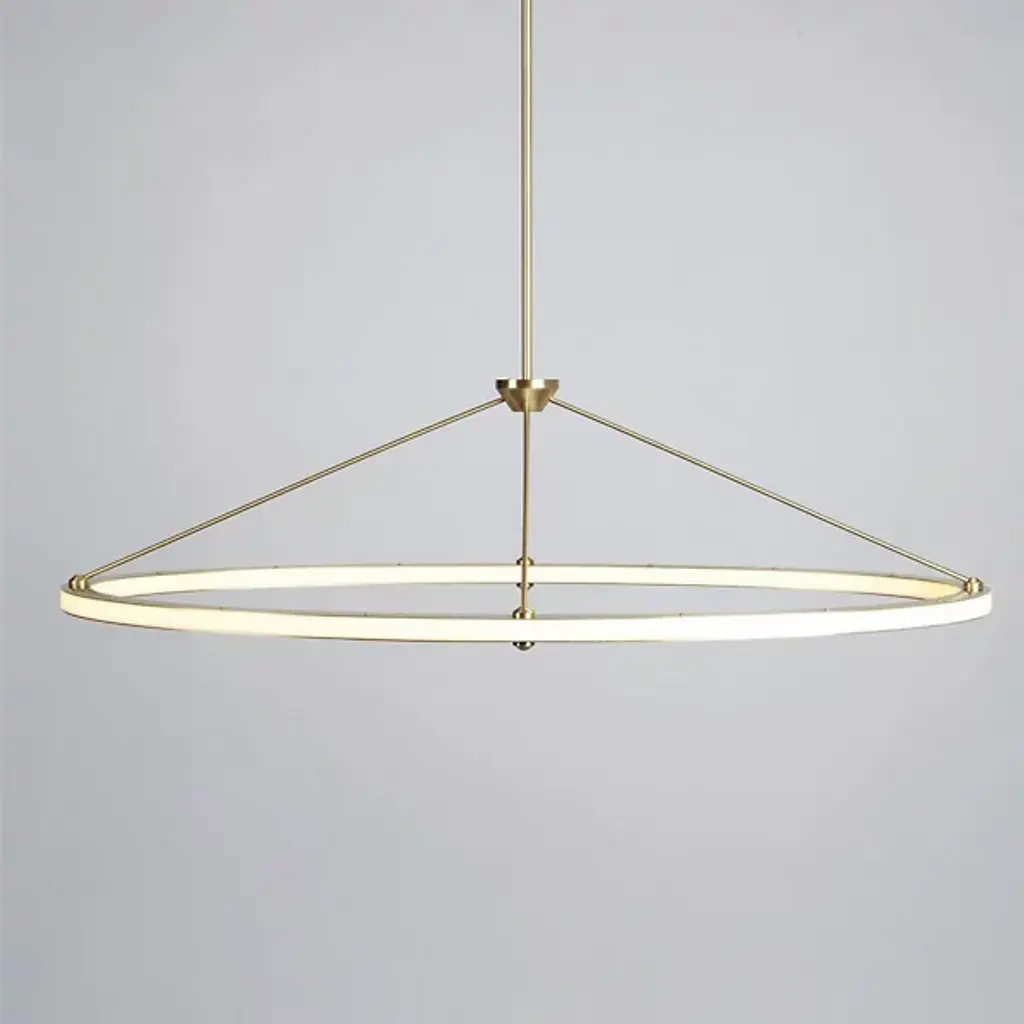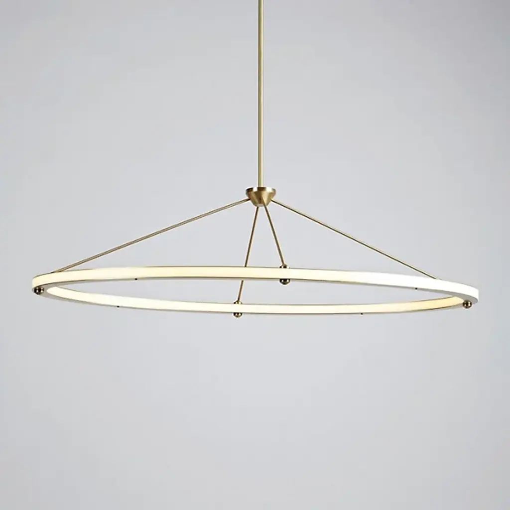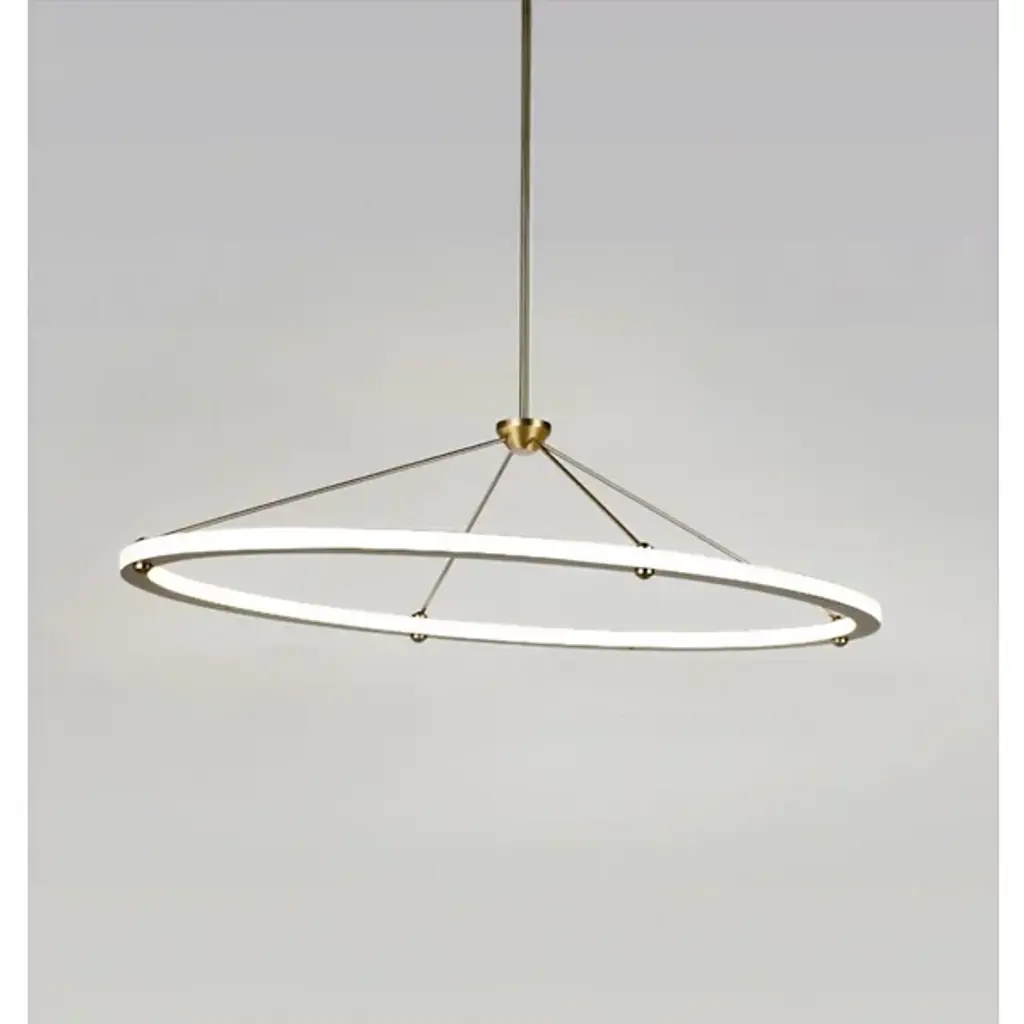 The Halo Oval Pendant Light from Roll & Hill is a simple and refined piece designed by Paul Loebach in 2011. Its delicate and airy design is influenced by art deco while showcasing a contemporary allure that elevates any interior. A single oval metal ring is suspended from a set of thin cables while glowing with a seamless band of LED light. Raised in the industrial landscape of the American Midwest, Loebach draws from his family history of manufacturing while adding an artful grace to pieces.
