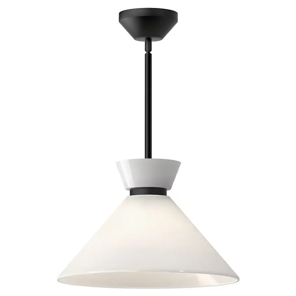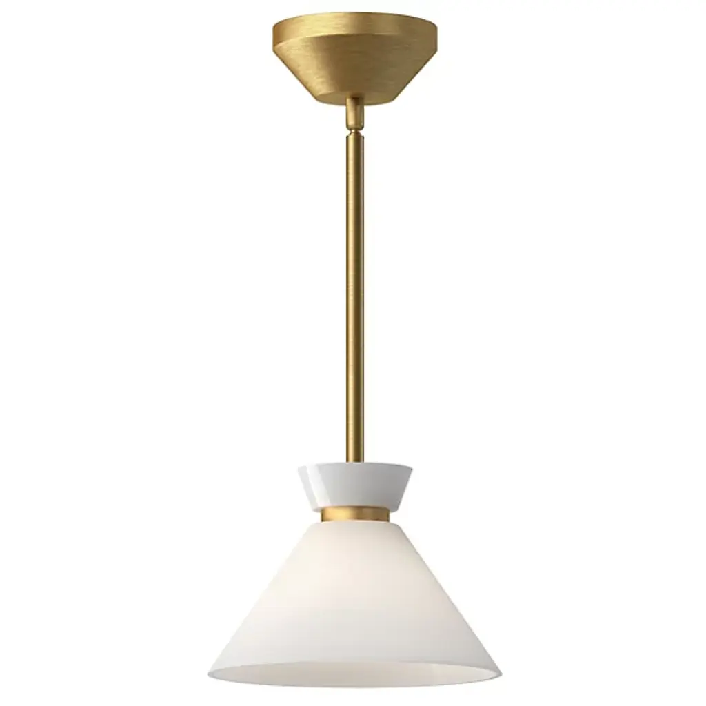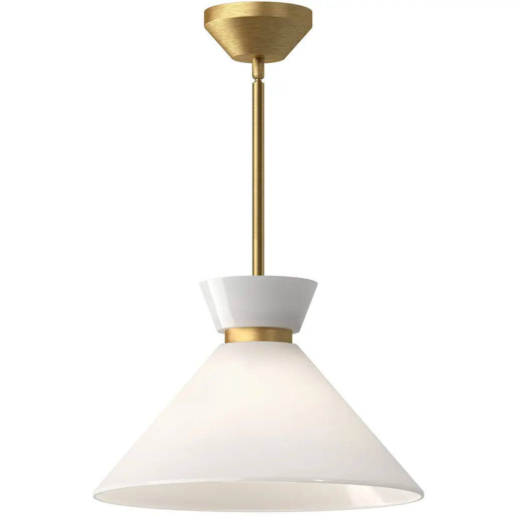 The Halston Pendant by Alora Mood features a tailored design that was inspired by the classic silhouettes found throughout 1950s formal wear. Accented with a smooth band around its flared top, a sleek, tapered opal glass shade elevates this design as its glossy finish comes to life, filtering a welcoming glow throughout its form as it helps to illuminate its surroundings. A simple down rod and matching canopy create a clean foundation for this piece, allowing the beautiful shade to stand out.