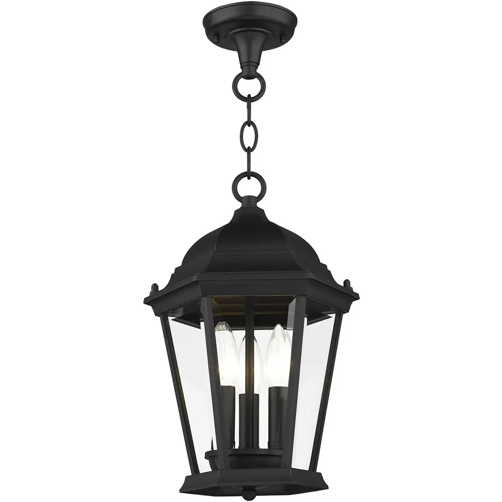 3 Lt Textured Black Outdoor Pendant Lantern