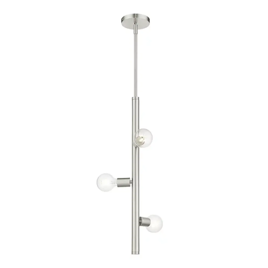 A simple and sleek way to bring new light to your modern home. The Hampton Pendant from Alder & Ore shapes the décor with a minimalist presence, complementing well with a variety of style choices. This piece hangs from the ceiling with a long and thin downrod that thickens to become the body of the piece. A set of crisp bulbs mount directly to the body, oriented in various ways to ensure a full glow reaches throughout the room.