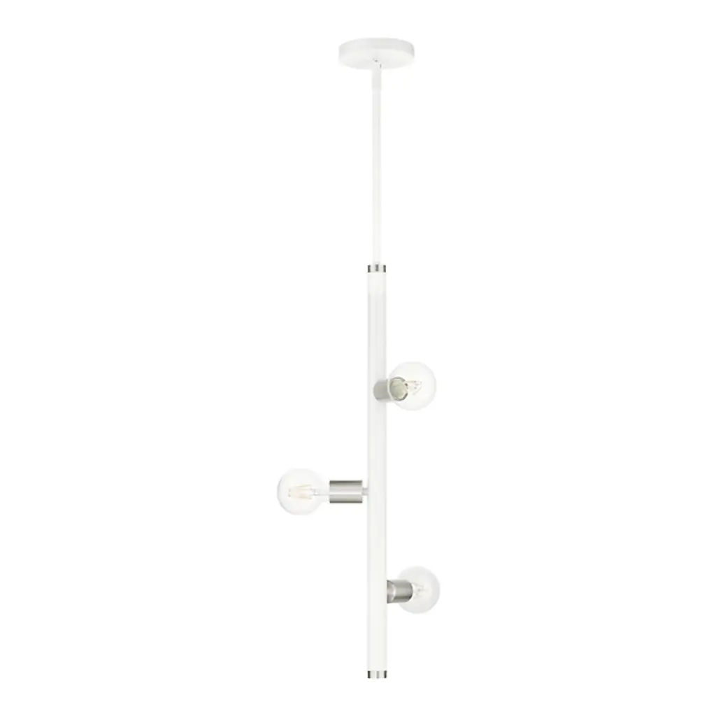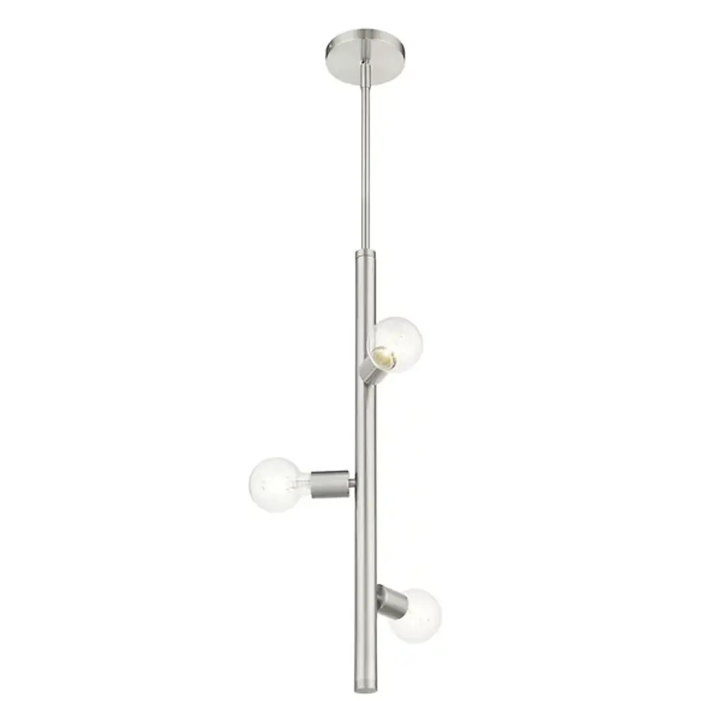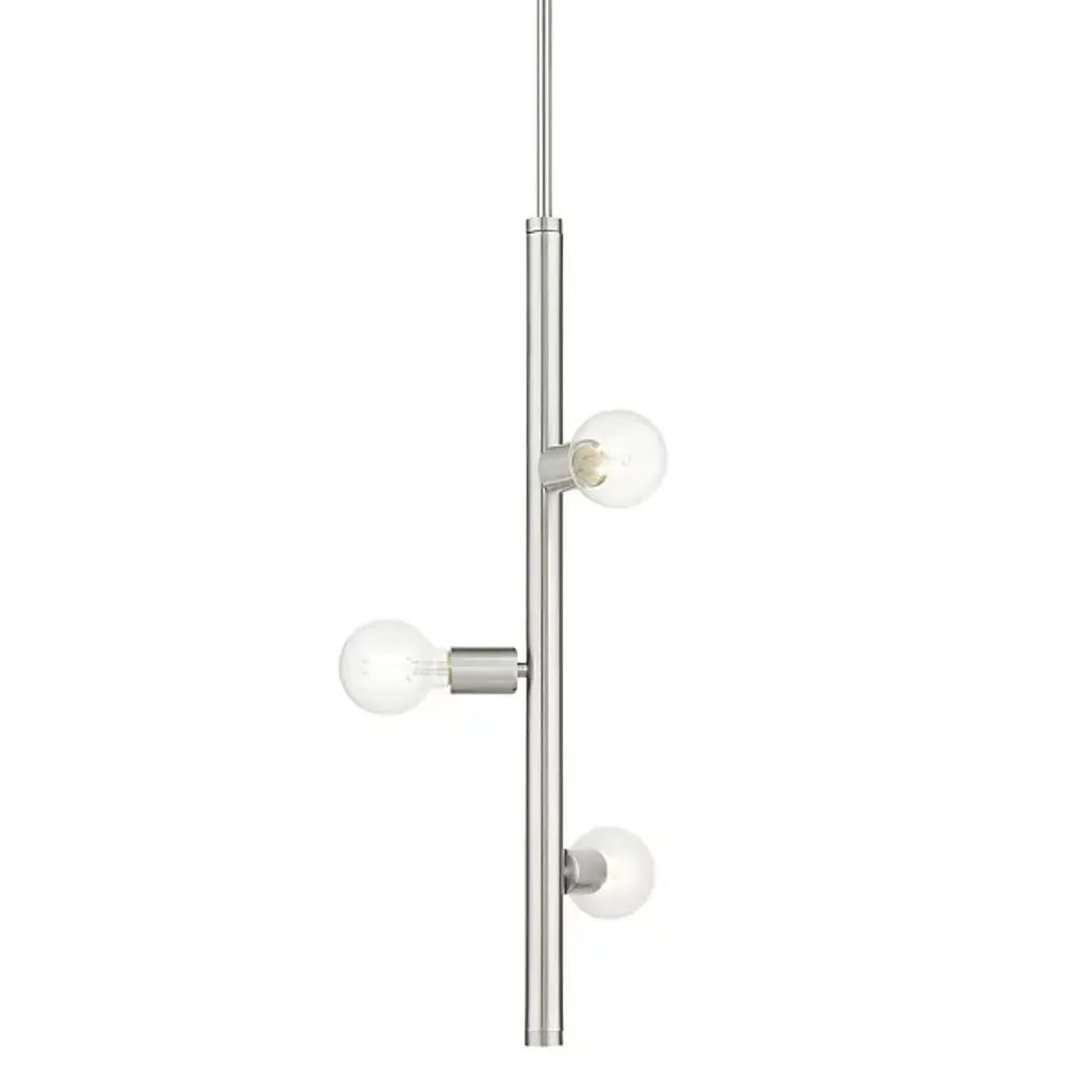 A simple and sleek way to bring new light to your modern home. The Hampton Pendant from Alder & Ore shapes the décor with a minimalist presence, complementing well with a variety of style choices. This piece hangs from the ceiling with a long and thin downrod that thickens to become the body of the piece. A set of crisp bulbs mount directly to the body, oriented in various ways to ensure a full glow reaches throughout the room.