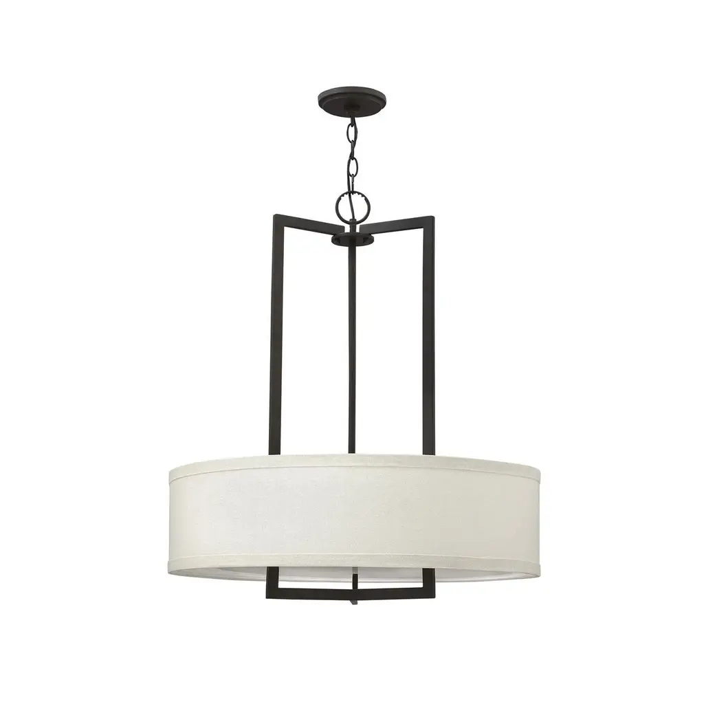 Hampton is a modern transitional design, offering the ultimate in urban sophistication. The minimal, rectangular frame, paired with a decorative acrylic etched bottom lens, is softened by a contemporary off-white linen drum shade. Features