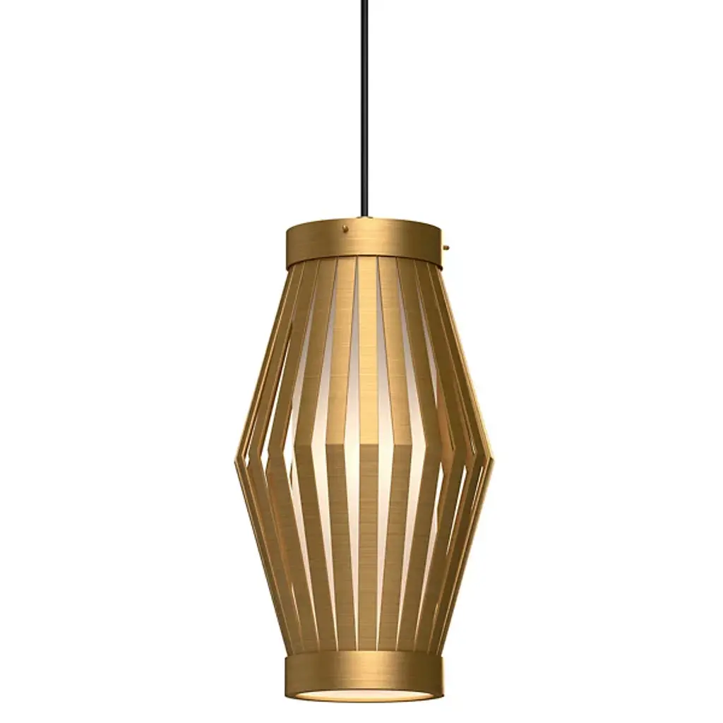 Inspired by traditional Japanese lanterns, the Hana Pendant by Alora Mood embraces the warm glow these pieces bring to the temples and festivals they are hung near. A cylindrical, opal glass core helps to softly diffuse a welcoming layer of illumination throughout the center of this design as it is housed within a crisp, geometric metal frame. The open spaces created by the strips of metal that form the outer layer of this pendant allow light to playfully escape onto surroundings, highlighting the silhouette of this design and brightening up rooms.