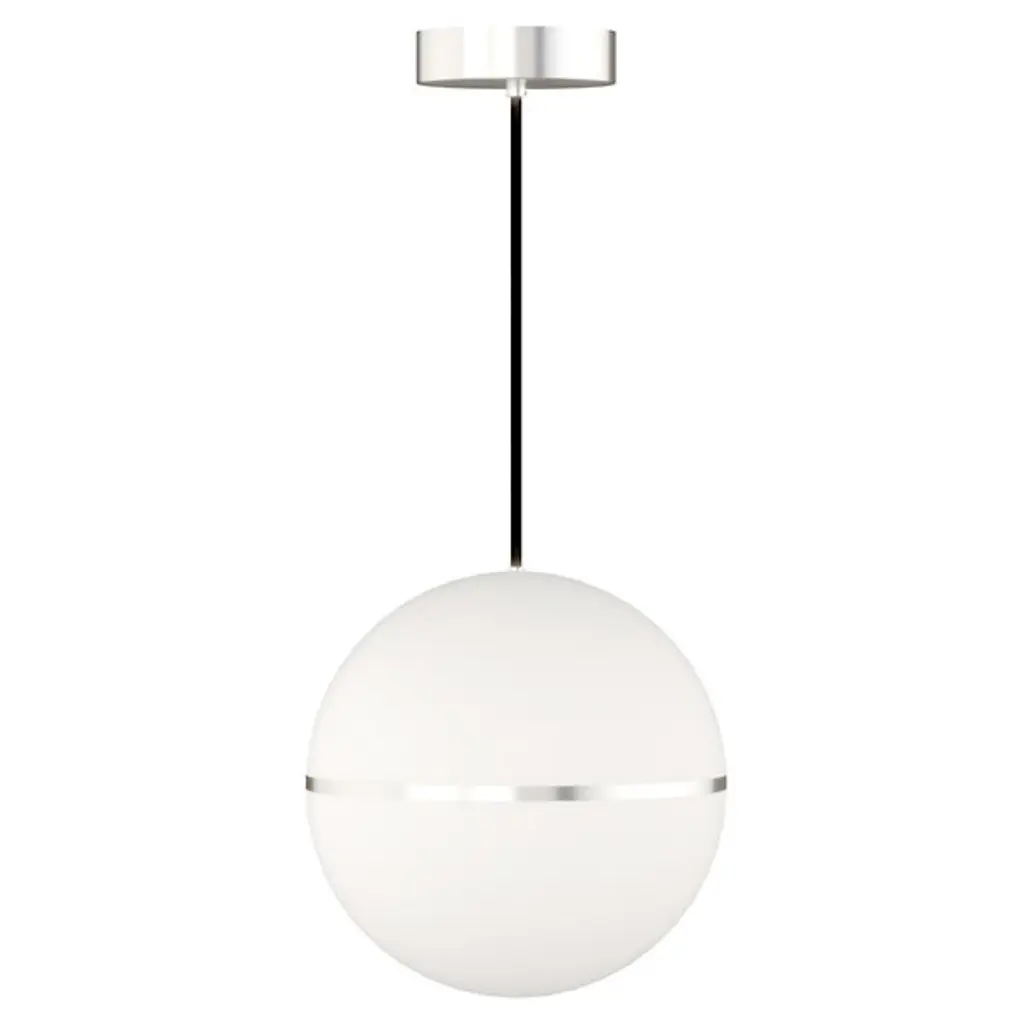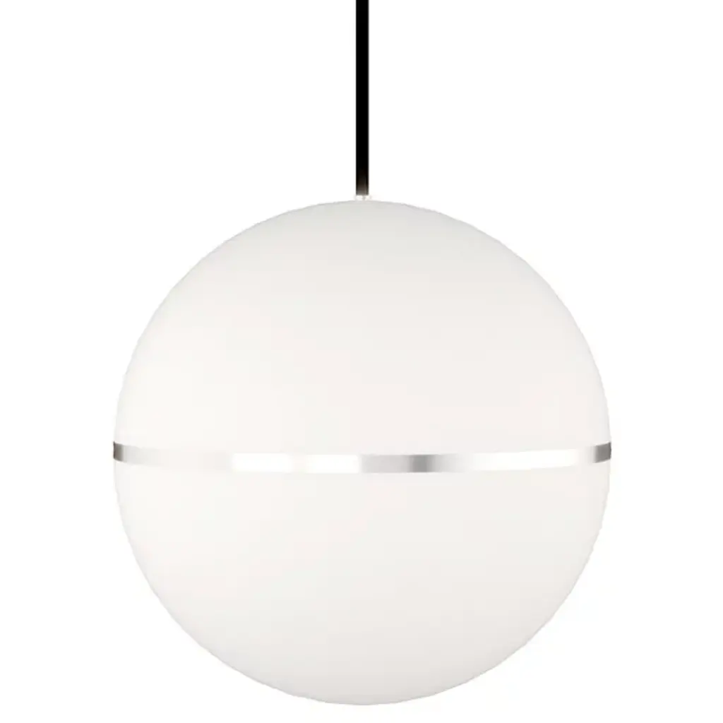 Go grande or go home with the Hanea LED Grande Pendant from Visual Comfort Modern, formerly known as Tech Lighting, Stepping into any room with this piece suspended above instantly creates an ambiance filled with sophistication and delight. It freshens up the enduring globe form of midcentury modern design with a stylish accent band across its centerline. The slick finish of the band feels impactful and cohesive as its low-profile canopy share’s its same look. Its acrylic shade mellows everything out in its creamy opaque surface. The shade transforms into an orb of clean, radiating LED light with a flip of the switch.