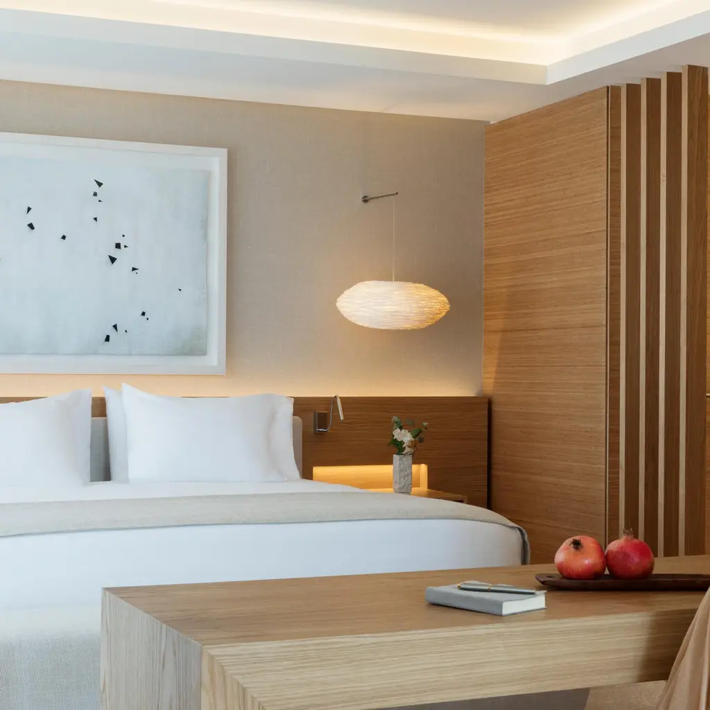 Rattan pendant light "Hanging World" is composed around a flattened tetrahydron structure, which is then clad with superfine extruded rattan, generating a warm and beautiful light quality. Hanging World pendant light by Ango has been used as bed side lamps, decorated at Ibiza Gran Hotel and Torralbenc Hotel in Spain. Hanging World by AngoType: Mains voltage ceiling lightMaterial: rattan + hand finished stainless steelSize: W 450 mm (17.5 in) x D 550 mm (21.5 in) x H 200 mm (8.5 in) Light source : LED Filament 6W x 1Please note that due to the handmade nature of our products, slight variations in size may occur compared to the tear sheet. Additionally, colours may change over time and with usage.