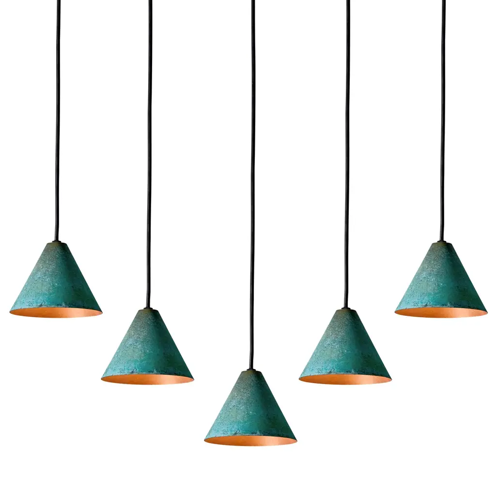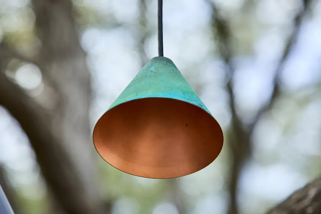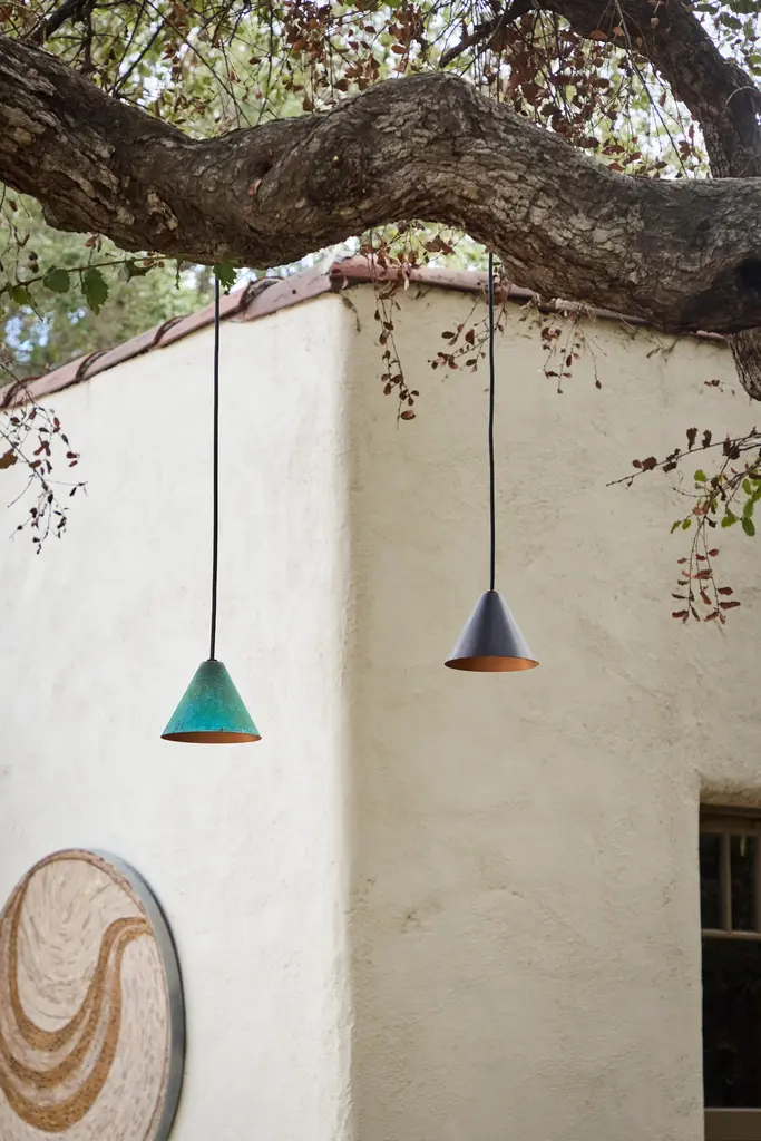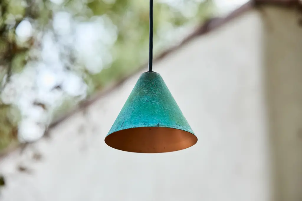 Hans-Agne Jakobsson Verdigris Patinated 'Mini-Tratten' Outdoor Pendant An exclusive made for U.S. and UL listed authorized re-edition of the classic Swedish design from Jakobsson, Executed in rich verdigris patinated metal with a burnished interior finish. An incredibly refined design that is quintessentially Scandinavian. This low-voltage version is UL listed for outdoor use and wet location. Price is per item. Available in unlimited quantities and in a variety of finishes including raw or polished brass or copper, verdigris patinated, darkly patinated, dark brown patinated, and white, black, brown, bronze, silver, or steel painted metal. An indoor version, as well as an indoor/outdoor sconce version, are also available in a separate listing. This listing is for the outdoor low-voltage verdigris 'Mini-Tratten' pendant. In-stock and ready to quick ship. Please note that inventory availability can change at any time. For time-sensitive orders, kindly inquire prior to purchasing. Authorized re-edition newly produced by Orsjo, Sweden. Professionally wired for US electrical with 9 feet of 18 gauge SJ exterior grade wire that can be cut to desired length. UL listed for wet location. Accommodates 1x US 12 volt e26 LED bulb (LED only, not included). Recommended installation by licensed electrician. Only one representative example of the patinated lamps is featured in the photos. Please note that the chemical patination process can result in unique variation from lamp to lamp including streaking, flaking, spotting, discoloration, patchiness and other irregularities, including inside the shade. The interior of the lamp is fabricated in unlacquered metal, and will also naturally patinate over time with exposure to the elements, handling, etc. Finish may vary from lamp to lamp, with darker and lighter color variations possible that may differ from the listing photos. Patinas can also change, fade over time and even rub off due to handling, storage, and exposure to the elements, resulting in further variation and irregularities. Patination is a dynamic process which continually evolves in beautifully unpredictable ways to create a unique look with its own special characteristics. Made to order.