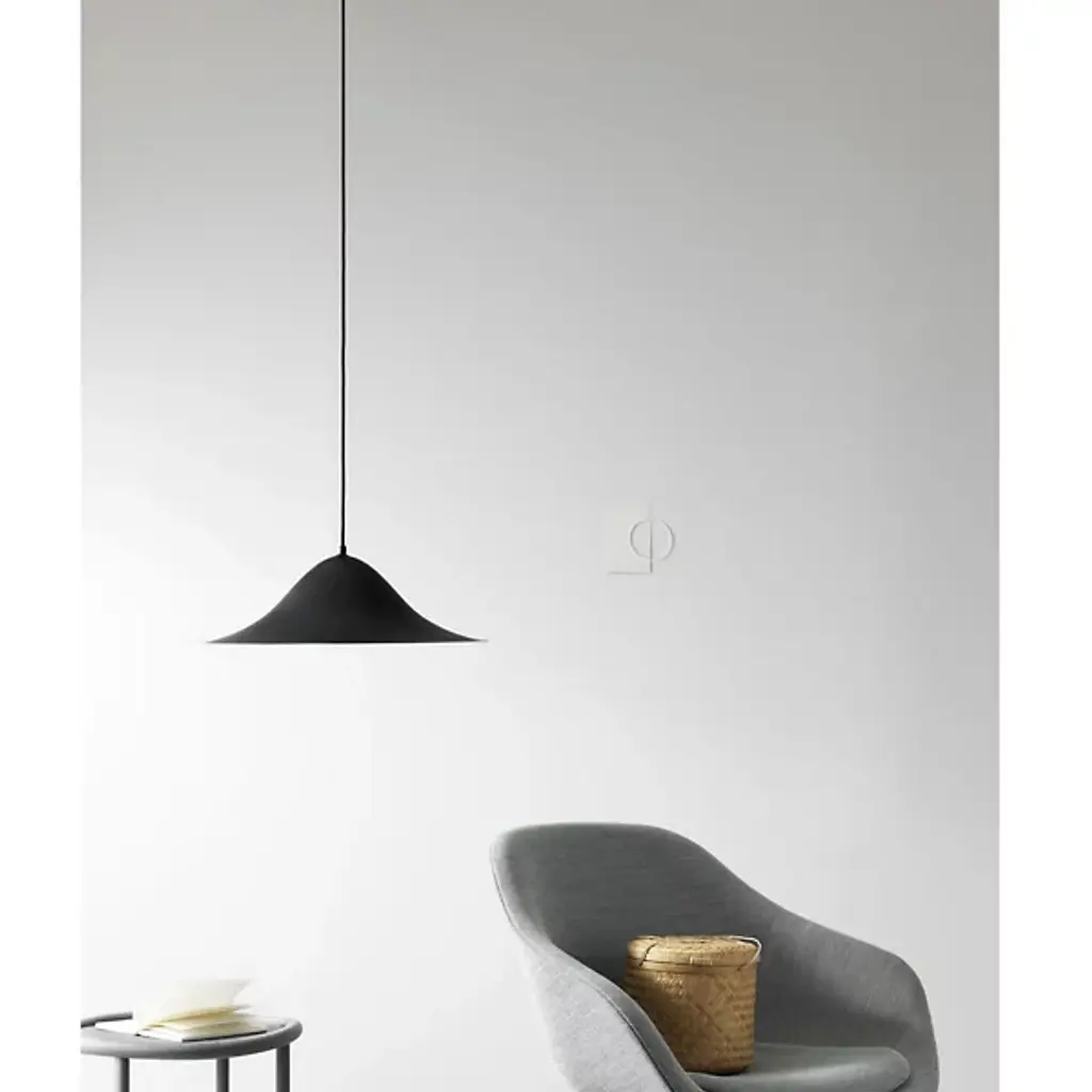 A quality addition to contemporary spaces. Simple in its initial appearance, the Hans Pendant from Pholc offers gentle visuals and great functionality. A 2015 design by Monika Mulder, it is made in Sweden and suspends a smooth aluminum bowl shade from above using a single woven cable. The shade shape evokes a horizontal waveform, adding a sense of ease to its surroundings while illuminating them from above. Excellent as a single statement or part of an evenly-spaced arrangement.