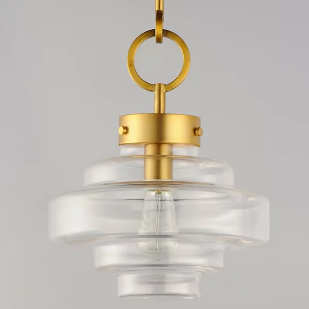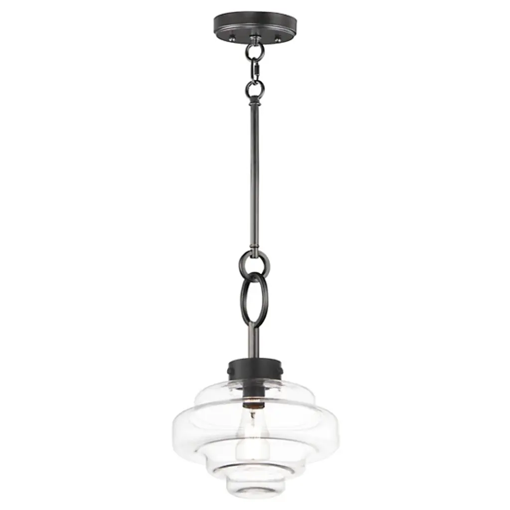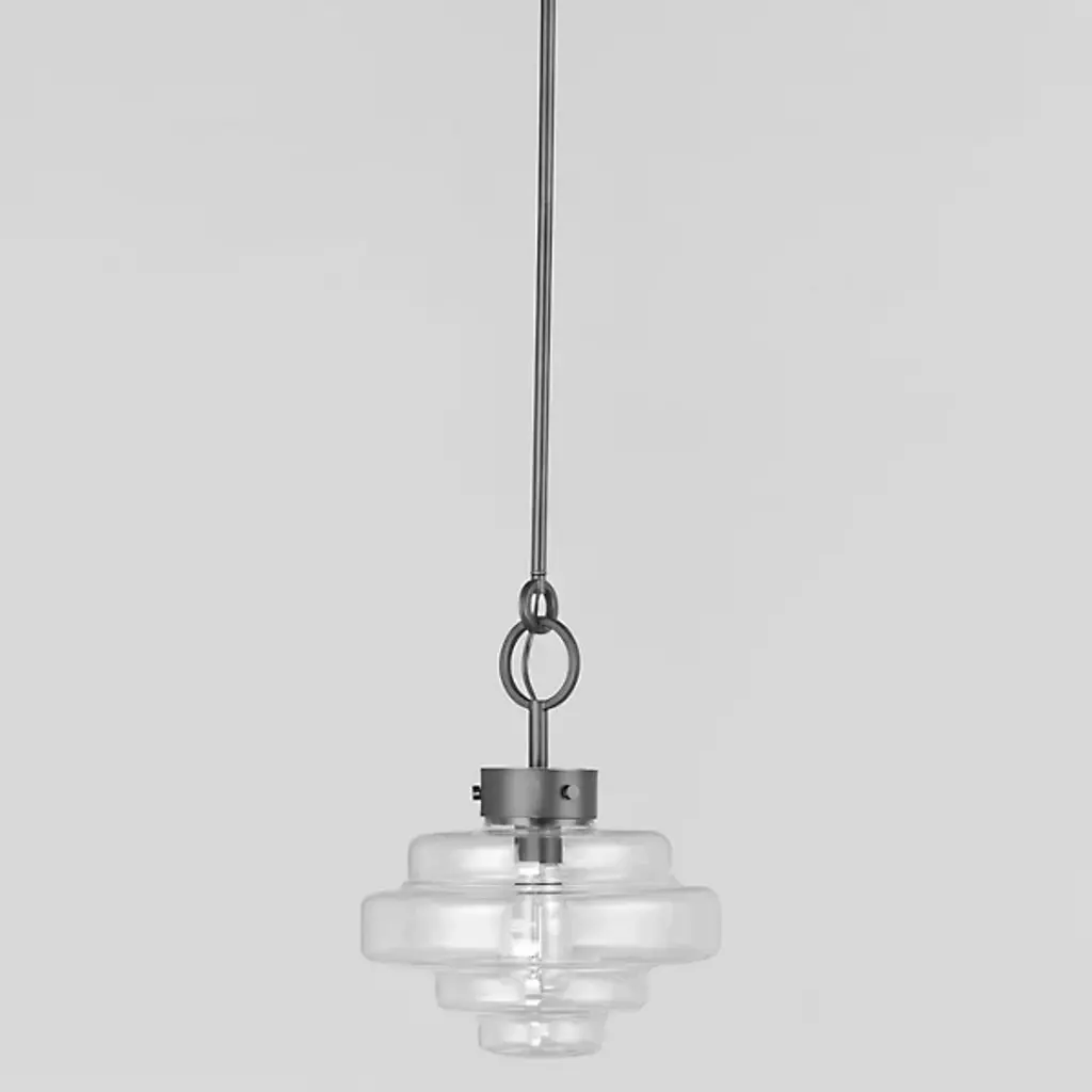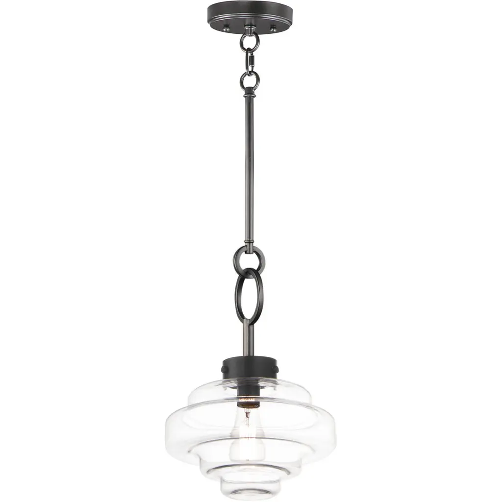 Style-heavy design, inspired by the robust fixtures of the harbor. Lighten up the mood in your room with the cool, coastal, and charming nautical personality of the Harbor Pendant from Maxim Design. Relaying its beauty through shape, this piece complements the modern and contemporary home setting with an industrial touch. Its bold ring hardware evokes nautical visuals in silhouette and industrial hardware with a set of screws. The sculptural shade below delights in its oscillating form. The layers of glass excite the room as they catch crisp, repeating highlights. Light radiating through the glass creates an ambiance-setting down low, one best suited over a table surface.
