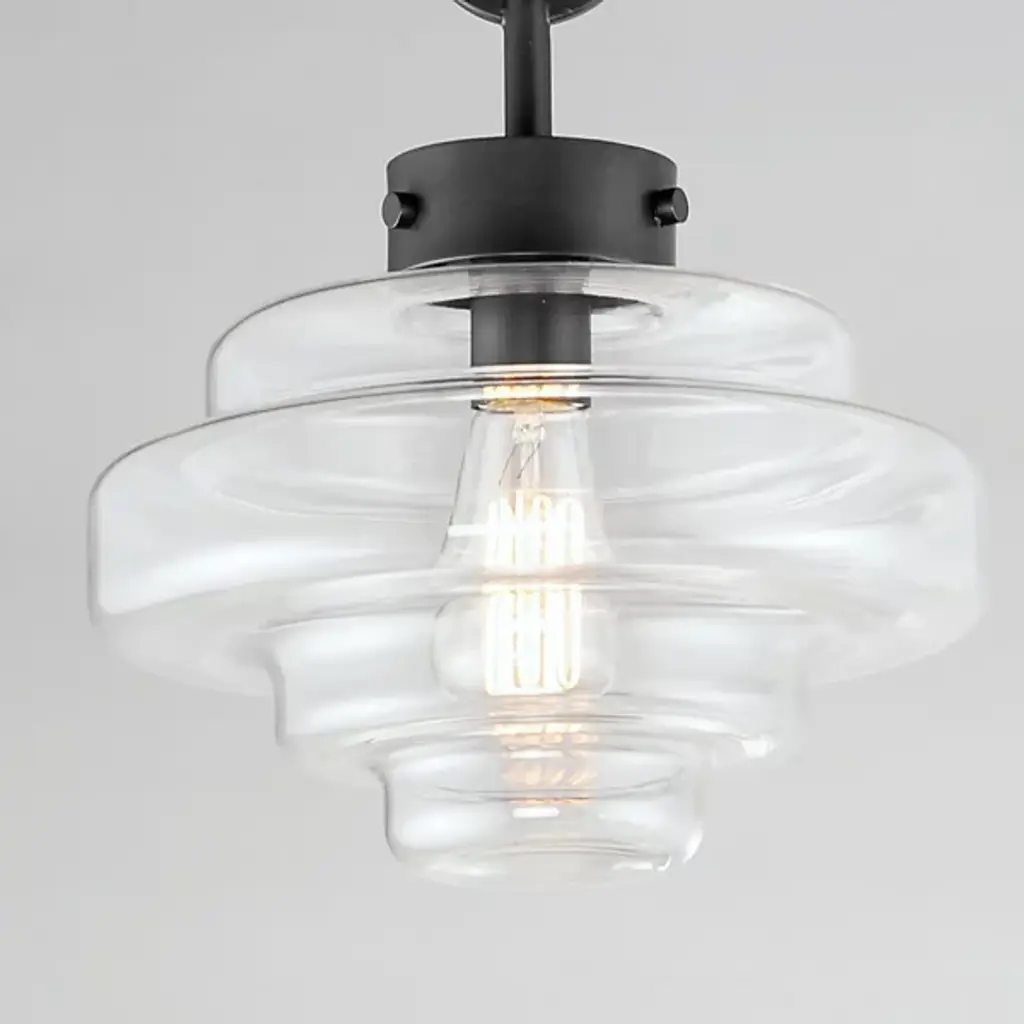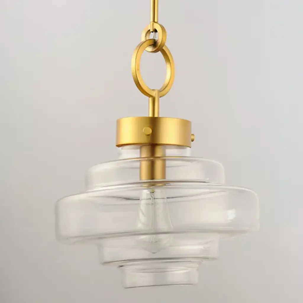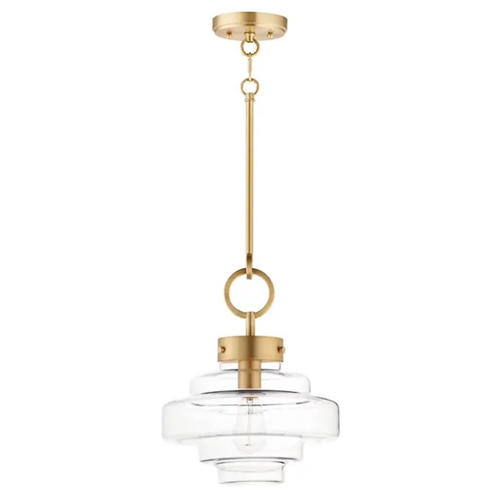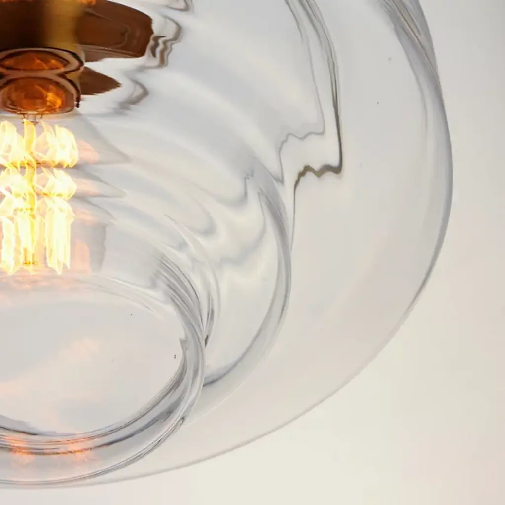 Style-heavy design, inspired by the robust fixtures of the harbor. Lighten up the mood in your room with the cool, coastal, and charming nautical personality of the Harbor Pendant from Maxim Design. Relaying its beauty through shape, this piece complements the modern and contemporary home setting with an industrial touch. Its bold ring hardware evokes nautical visuals in silhouette and industrial hardware with a set of screws. The sculptural shade below delights in its oscillating form. The layers of glass excite the room as they catch crisp, repeating highlights. Light radiating through the glass creates an ambiance-setting down low, one best suited over a table surface.