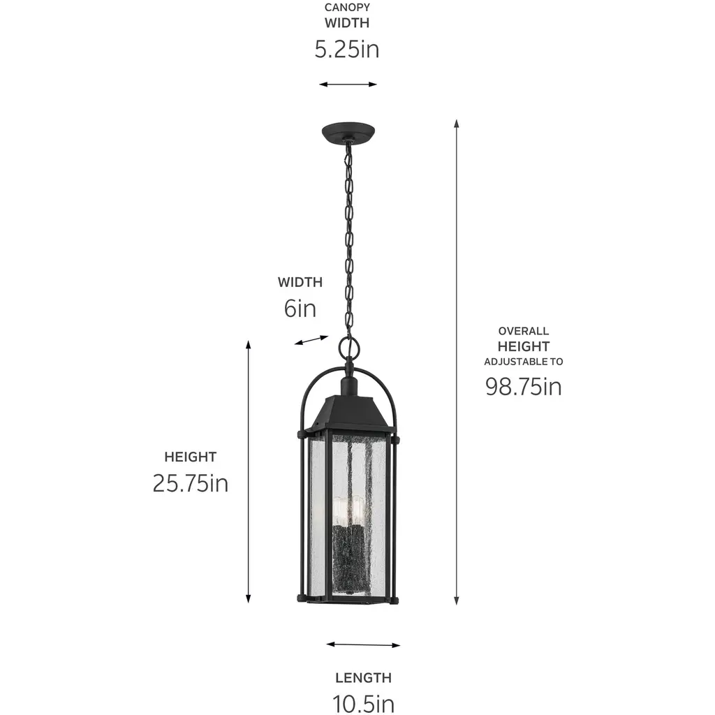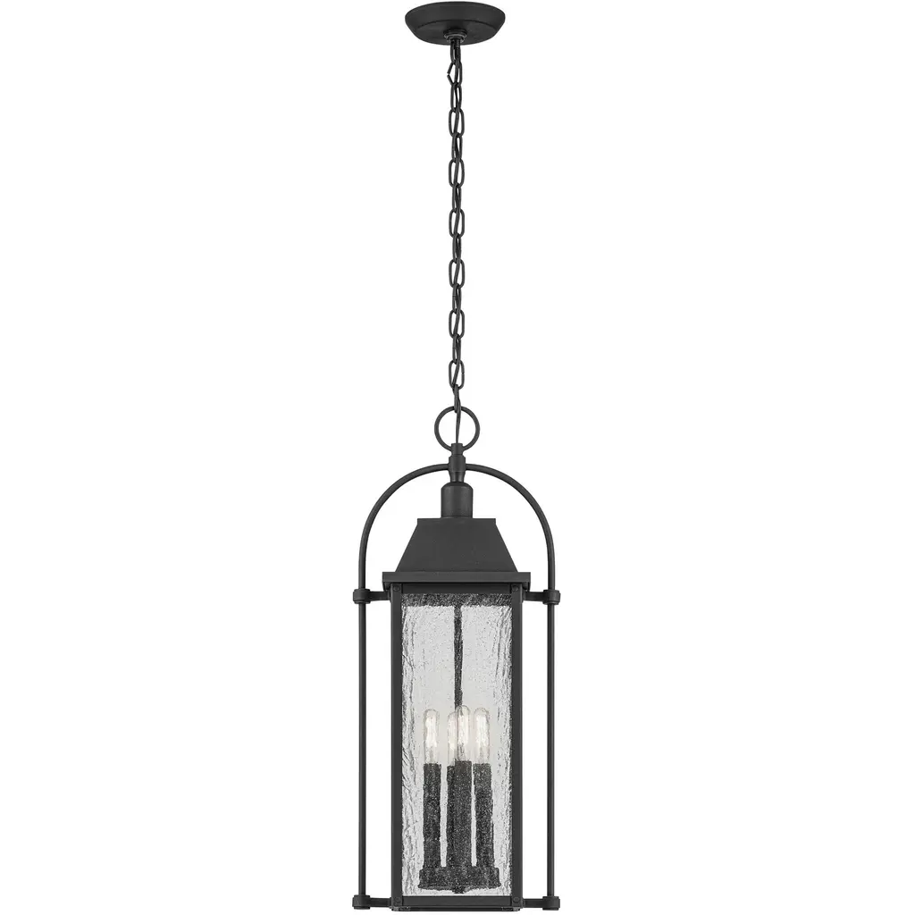 Harbor Row 25.75" 4-Light Outdoor Hanging Light with Clear Seeded Glass in Textured Black