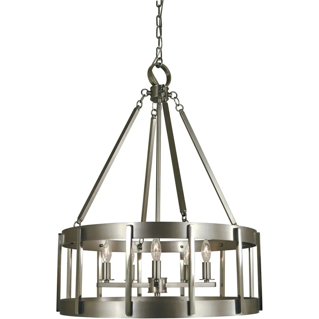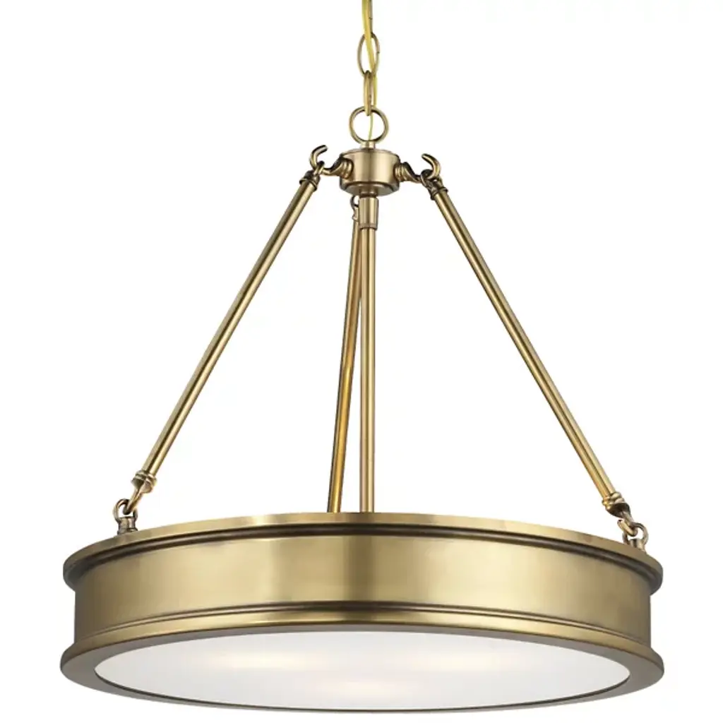 Tasteful, traditional style. The Minka-Lavery Harbour Point Drum Pendant presents a clean silhouette that needs little embellishment. Hook-and-rod elements offer structural detail, joining the drum-shaped shade to the suspension chain. Subtly tiered edges add a touch of detail while below, an etched white glass diffuser provides a smooth wash of cheerful illumination.