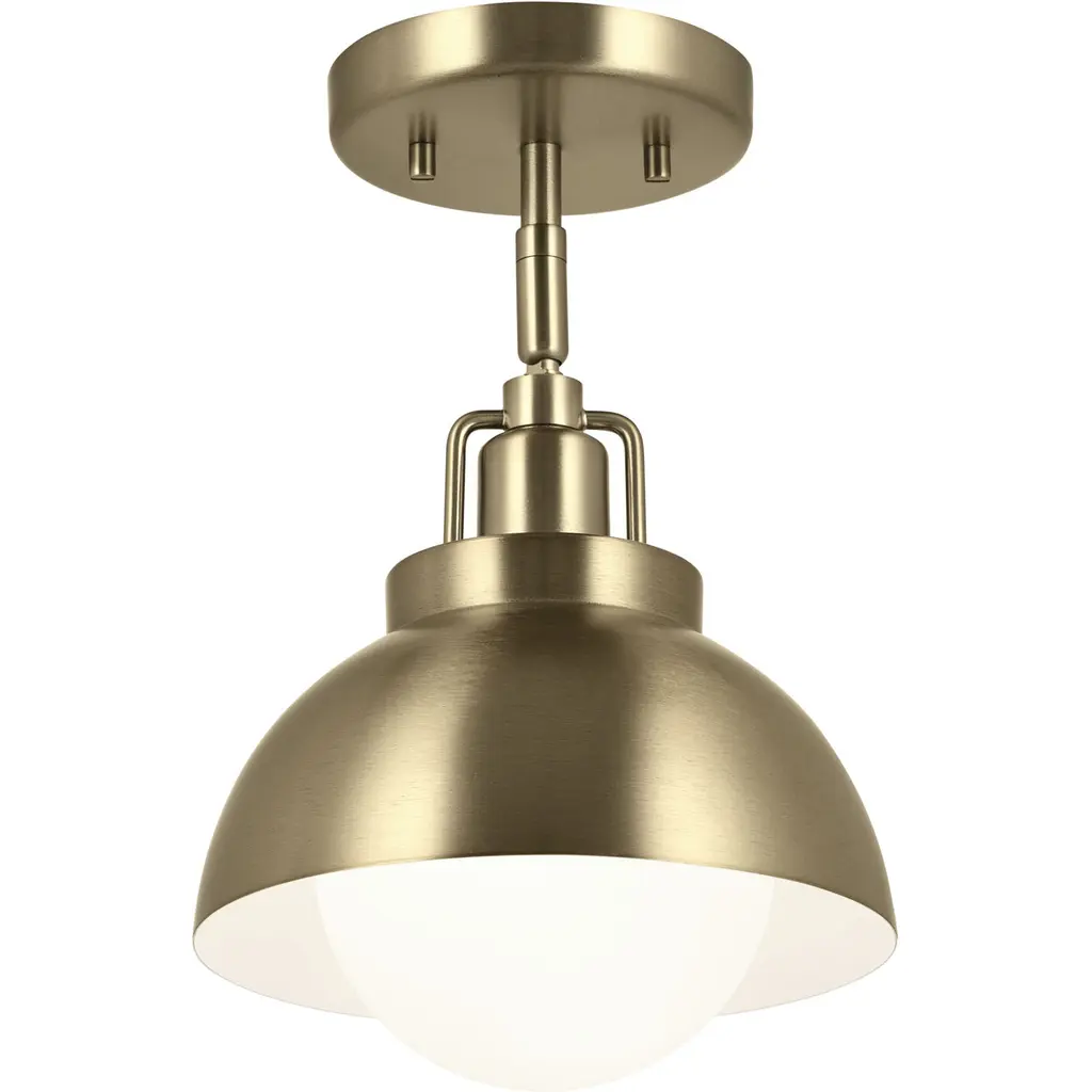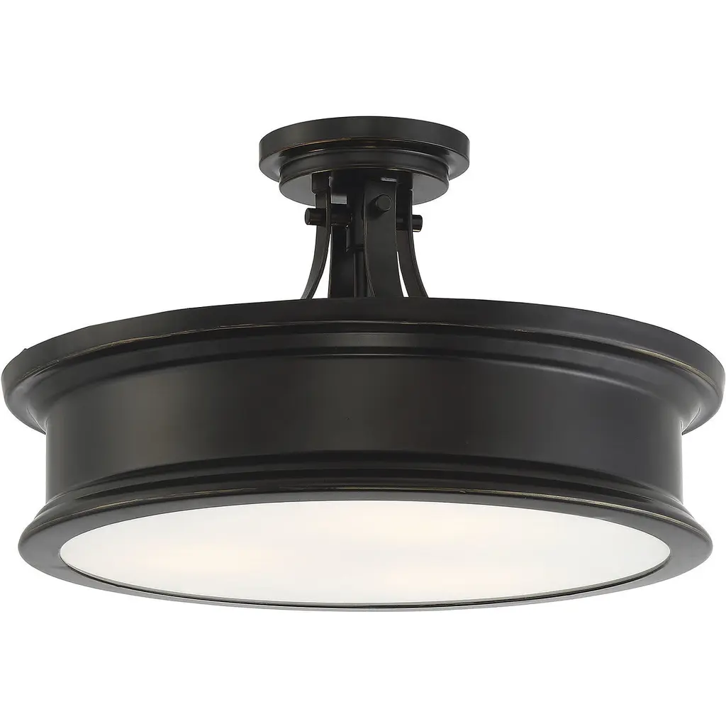 Tasteful, traditional style. The Minka-Lavery Harbour Point Drum Semi-Flushmount presents a clean silhouette that needs little embellishment. Hook-and-rod supports join the drum-shaped shade to the canopy, all in a rich Liberty Gold finish. Subtly tiered edges add a touch of detail while below, an Etched White glass diffuser provides a smooth wash of cheerful illumination.