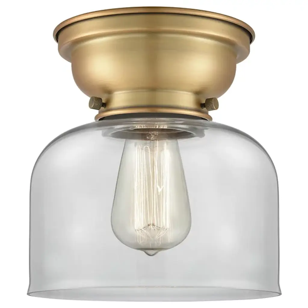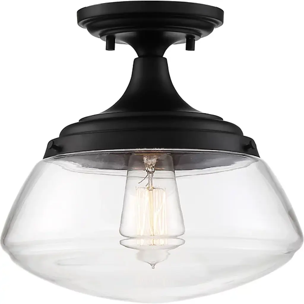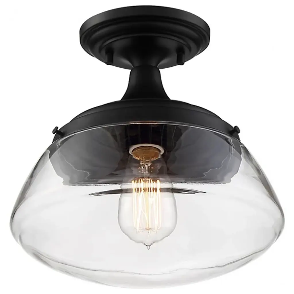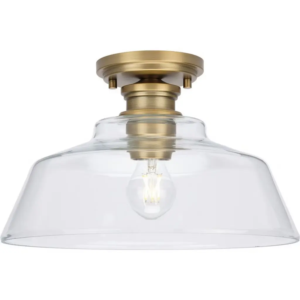 Presented by Alder & Ore, the Harlow Semi-Flushmount is a transitionally styled luxury light furnishing with farmhouse-inspired touches throughout. The exposed bulb at the center of the beautifully sculpted clear shade evokes a vintage industrial aesthetic, while metallic finials contrast elegantly against the airiness of the glass. Meant for installation on the ceiling above, display the Harlow Semi-Flushmount in spaces of preference to evoke a pleasant illumination experience for all.