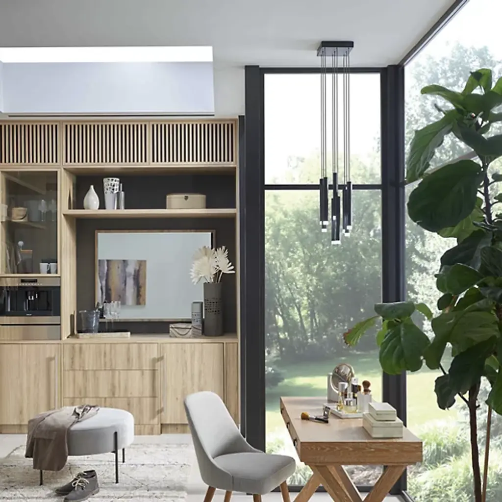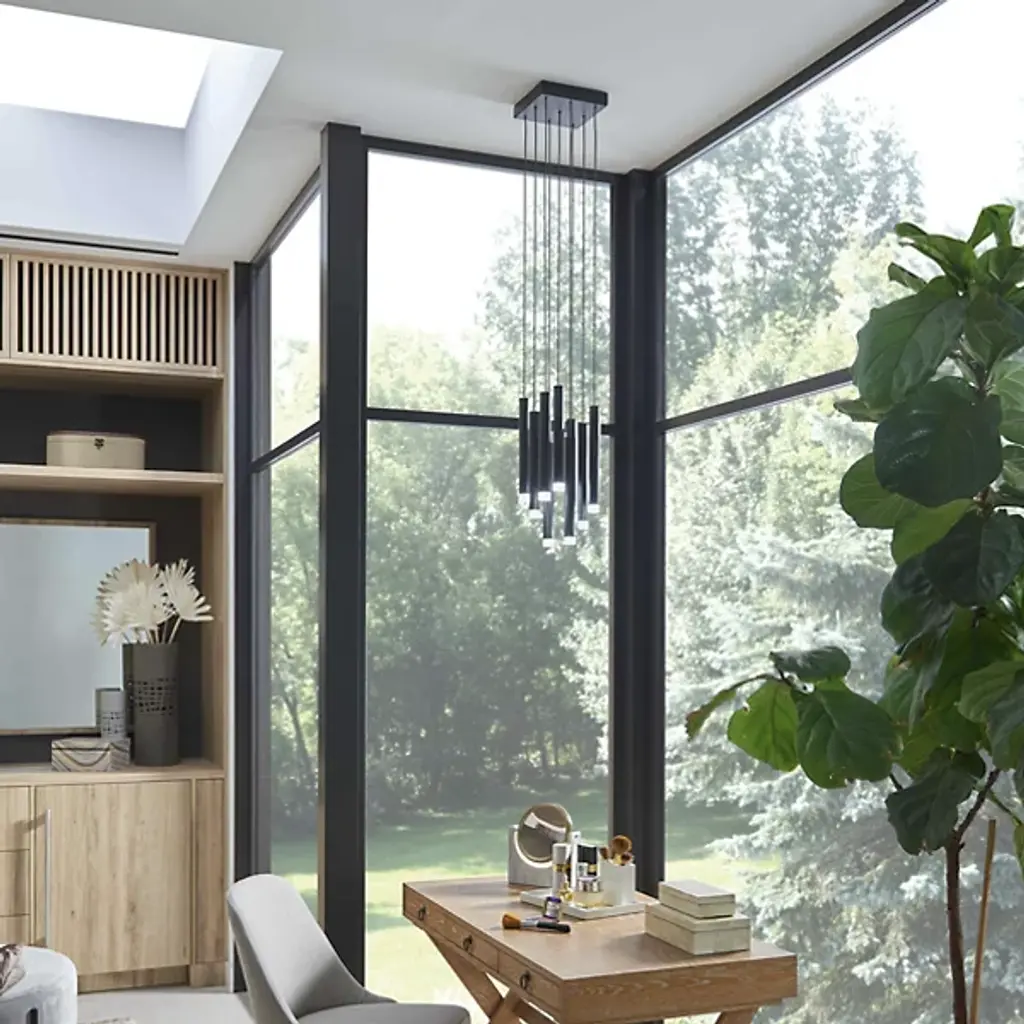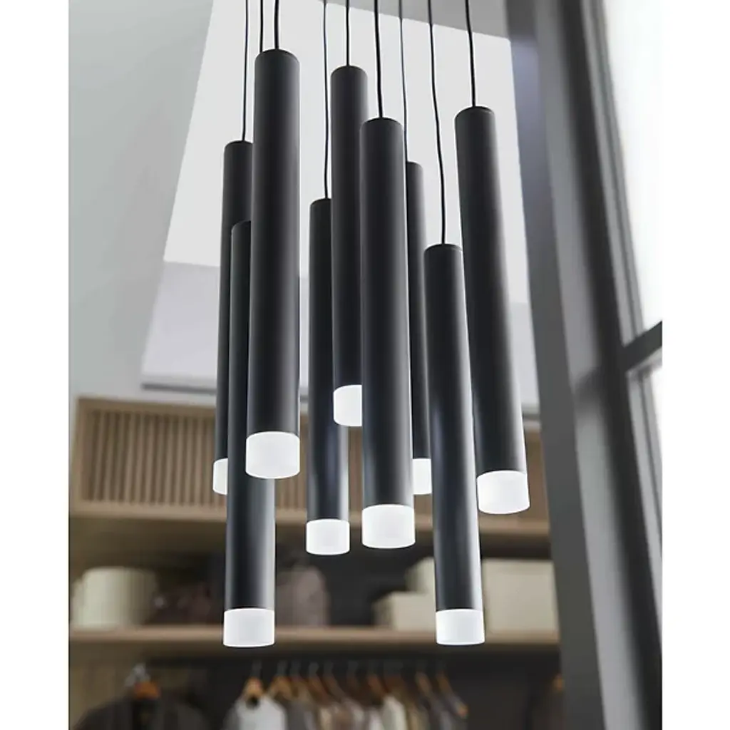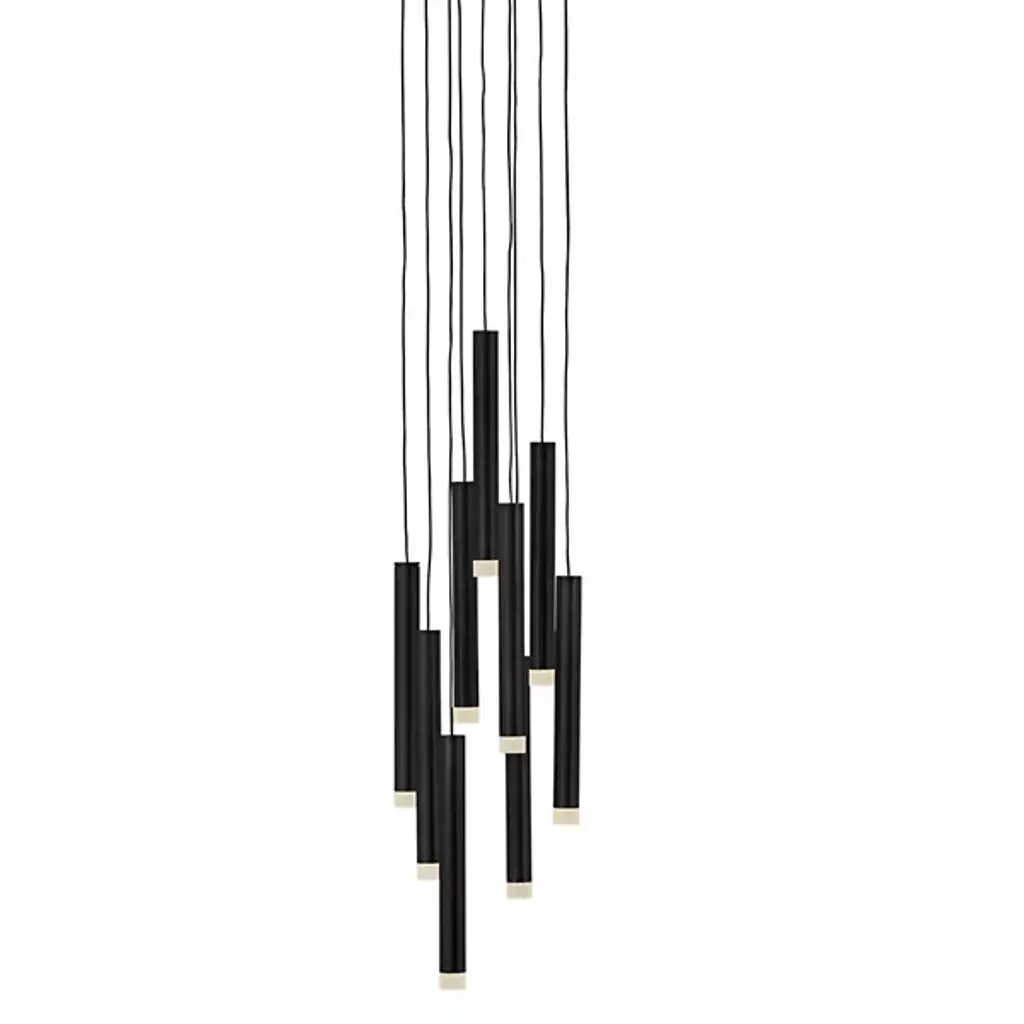 The Harmony LED the whimsical form of wind chimes inspired Multi Light Pendant by Fredrick Ramond. With a sophisticated composition that can be arranged to create custom configurations, bold steel tubes with LED caps at the bottom of their columns descend from a simple square canopy. These sleek and minimalistic elements deliver a dramatic and dimensional statement as this pendant brings a diffused layer of light to your home.