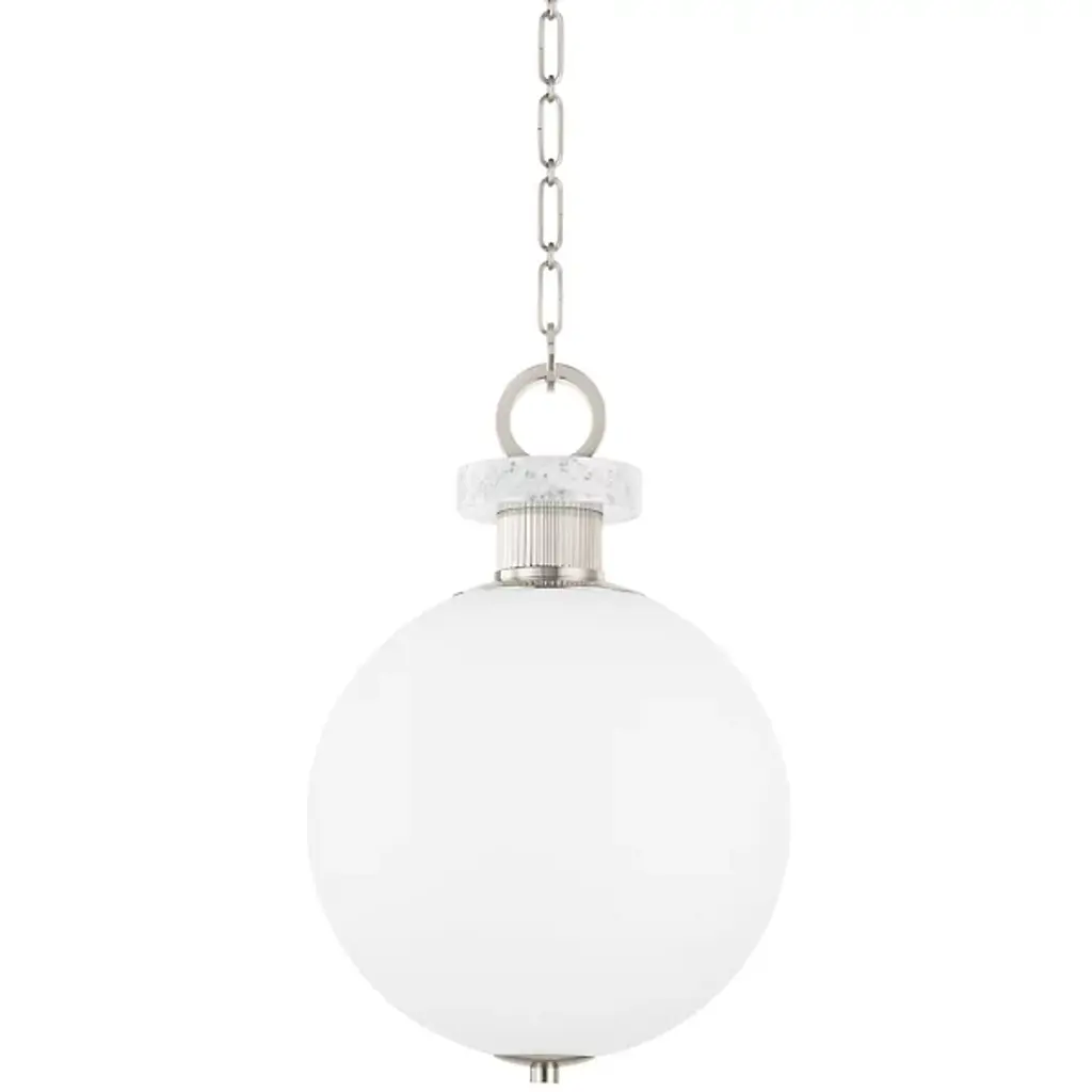 The Haru Pendant is a contemporary luxury light furnishing presented by Corbett Lighting. It features a sturdy steel build and an etched opal matte glass shade diffuser for an ethereal and enchanting illumination experience. It’s ideal for adding light and elegance to any indoor space you desire, but a few examples of placement could be over a dining area, hanging in multiples at different lengths to create a dramatic installation, or they could even be placed in damp locales like a covered outdoor patio or a steamy shower room.