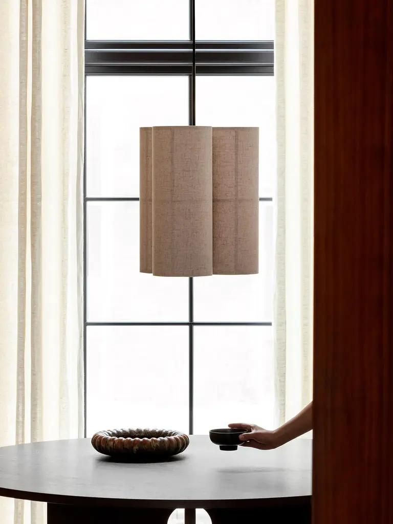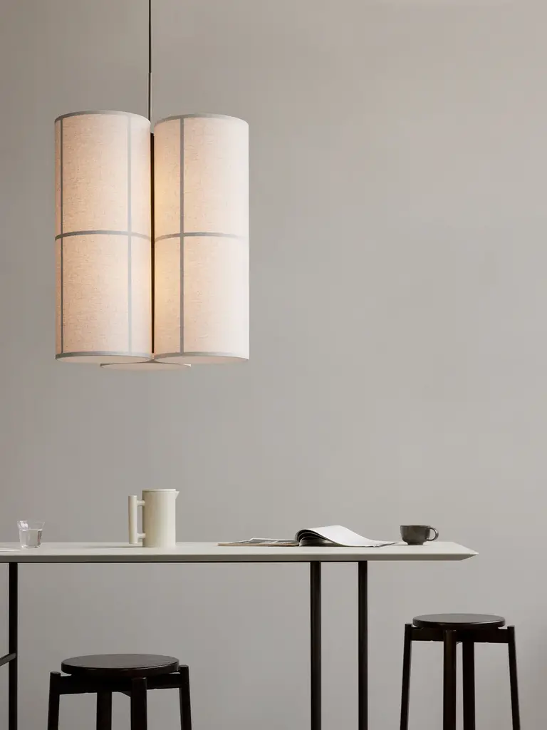 *Bulb Not Included Audo launches the Hashira Collection, a modern, Nordic take on the traditional Japanese rice paper lantern. A fusion of East and West, tradition and modernity, and a perfect balance of aesthetics and proportion and simplicity and character, Hashira is a new collection of floor, table and pendant lamps for modern spaces. Designed by Norm Architects, the collection takes its cues from visits to traditional Japanese Washi paper makers and its name from the Japanese word for column or pillar. The cylindrical Hashira Floor Lamp rises majestically from the floor. The translucent fabric shade not only acts as a diffuser, projecting the light in multiple directions while creating a cozy, glare-free ambiance, it also adds palpable appeal that enhances the softness of an interior, acoustically as well as tactilely. Shaped from the basic geometric form in architecture, the slender Hashira Table Lamp is set on a wooden base that underpins the minimalist expression and is visible through the translucent fabric shade that softly diffuses the light in multiple directions. The Hashira Cluster, a trio of pendants suspended from a black textile cord, is offered in two sizes (small and large) that lend themselves to any setting thanks to its minimalist expression and natural materials, and the collection’s single pendant light, available in two sizes, is created with the same column-like shape as the floor and table lamps to fill spaces with cozy, ambient light. Spreading ambient light in a room, the Hashira Collection makes for purposeful lighting above a dining table, in a reception area or on a table in a hotel bedroom, bringing a sense of understated luxury and purpose to interior spaces.”, Norm Architects