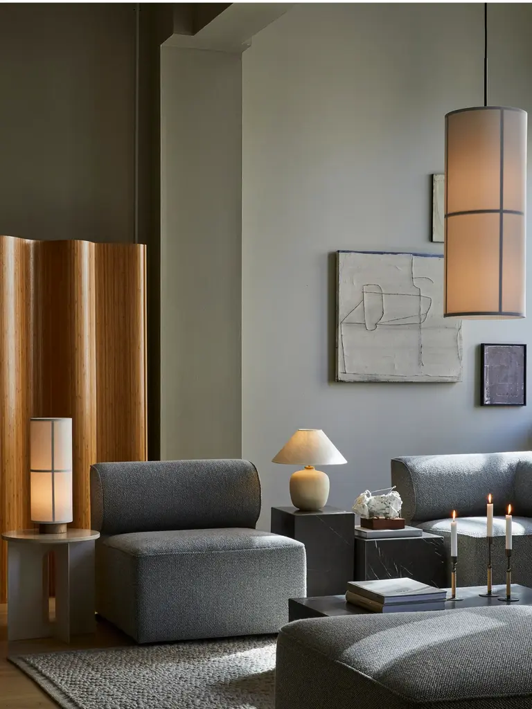 *Bulb Not Included Audo launches the Hashira Collection, a modern, Nordic take on the traditional Japanese rice paper lantern. A fusion of East and West, tradition and modernity, and a perfect balance of aesthetics and proportion and simplicity and character, Hashira is a new collection of floor, table and pendant lamps for modern spaces. Designed by Norm Architects, the collection takes its cues from visits to traditional Japanese Washi paper makers and its name from the Japanese word for column or pillar. The cylindrical Hashira Floor Lamp rises majestically from the floor. The translucent fabric shade not only acts as a diffuser, projecting the light in multiple directions while creating a cozy, glare-free ambiance, it also adds palpable appeal that enhances the softness of an interior, acoustically as well as tactilely. Shaped from the basic geometric form in architecture, the slender Hashira Table Lamp is set on a wooden base that underpins the minimalist expression and is visible through the translucent fabric shade that softly diffuses the light in multiple directions. The Hashira Cluster, a trio of pendants suspended from a black textile cord, is offered in two sizes (small and large) that lend themselves to any setting thanks to its minimalist expression and natural materials, and the collection’s single pendant light, available in two sizes, is created with the same column-like shape as the floor and table lamps to fill spaces with cozy, ambient light. Spreading ambient light in a room, the Hashira Collection makes for purposeful lighting above a dining table, in a reception area or on a table in a hotel bedroom, bringing a sense of understated luxury and purpose to interior spaces.”, Norm Architects