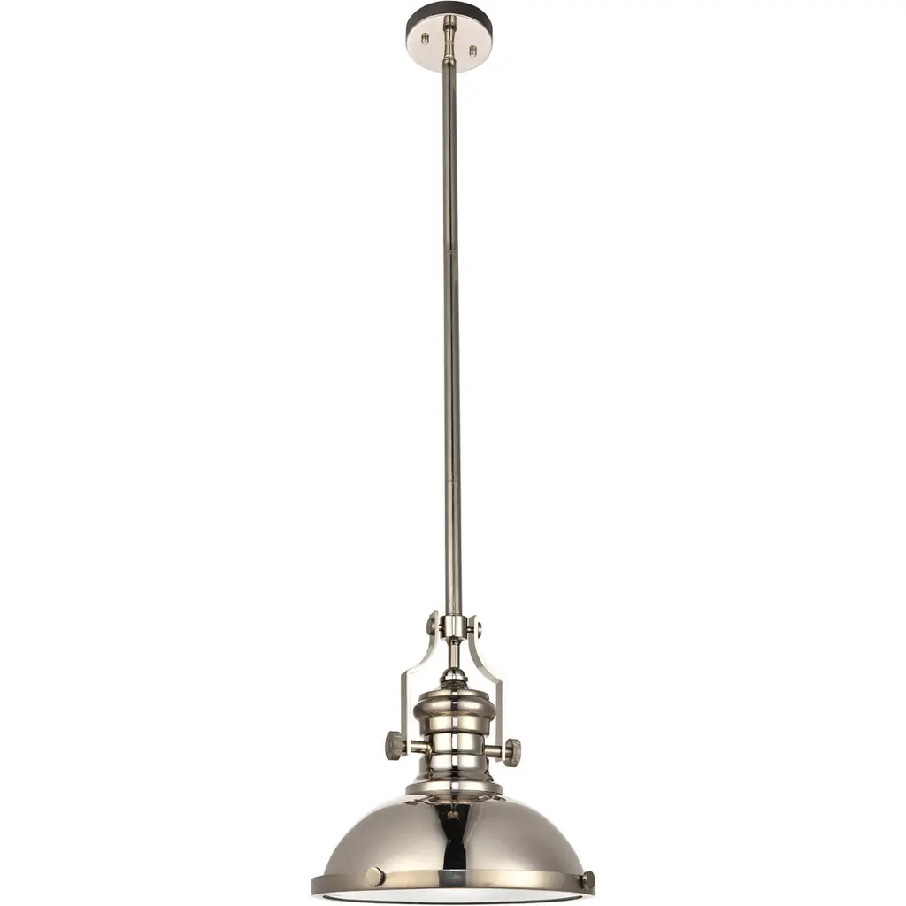 The Hatteras Bay(TM) 19.5in. 1 light pendant features a classic industrial look with its Polished Nickel finish and clear fresnel lens. The Hatteras Bay(TM) pendant works in several aesthetic environments, including vintage industrial, traditional and transitional.