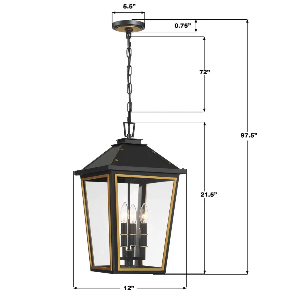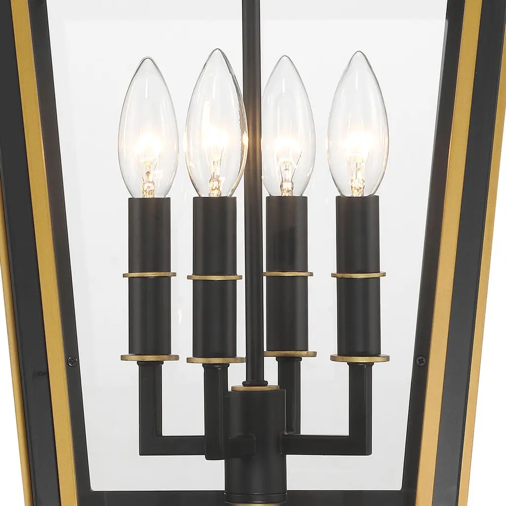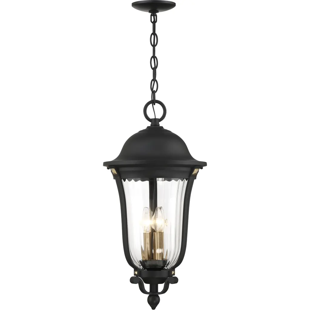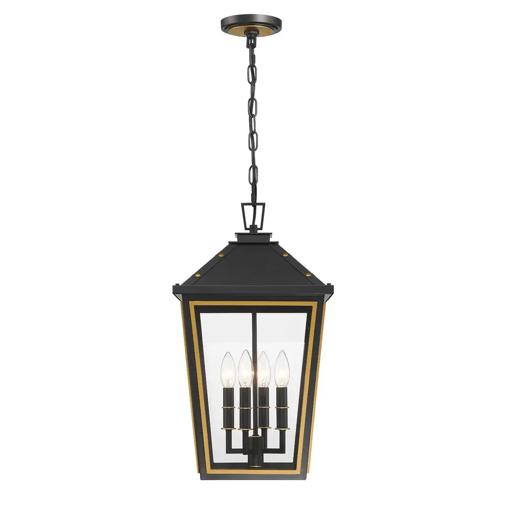 Hawkins 4-light Outdoor Pendant, Matte Black/textured Gold