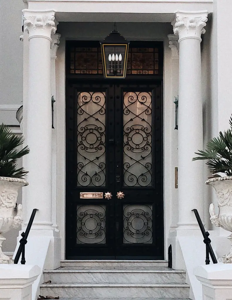 The Hawkins collection offers a modern take on traditional design. It showcases elegant, stately details that highlight a two-tone finish, clear glass panels, and gold rivet accents, seamlessly blending timeless charm with modern sophistication. The vintage charm makes it an ideal choice for creating an inviting and stylish outdoor space.
